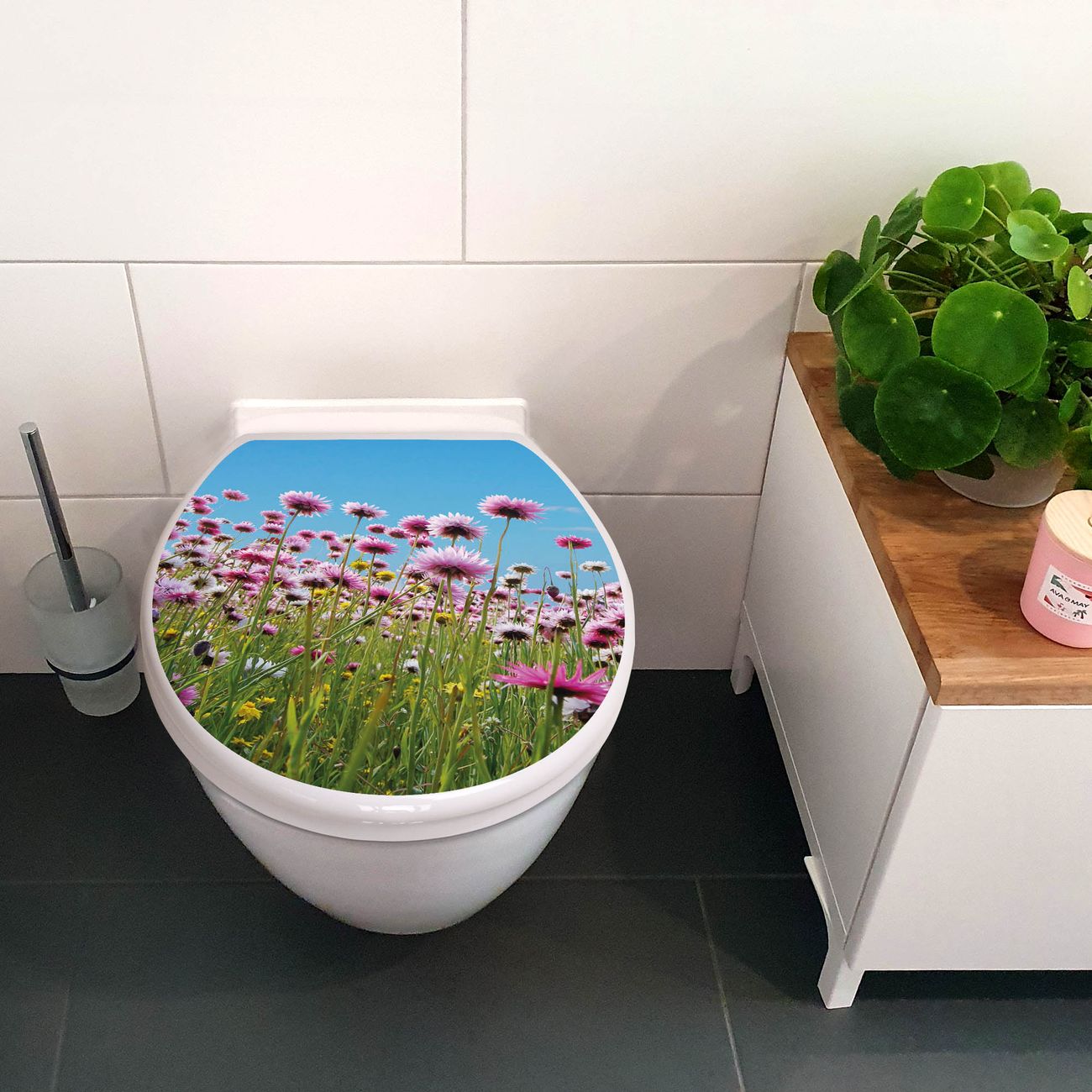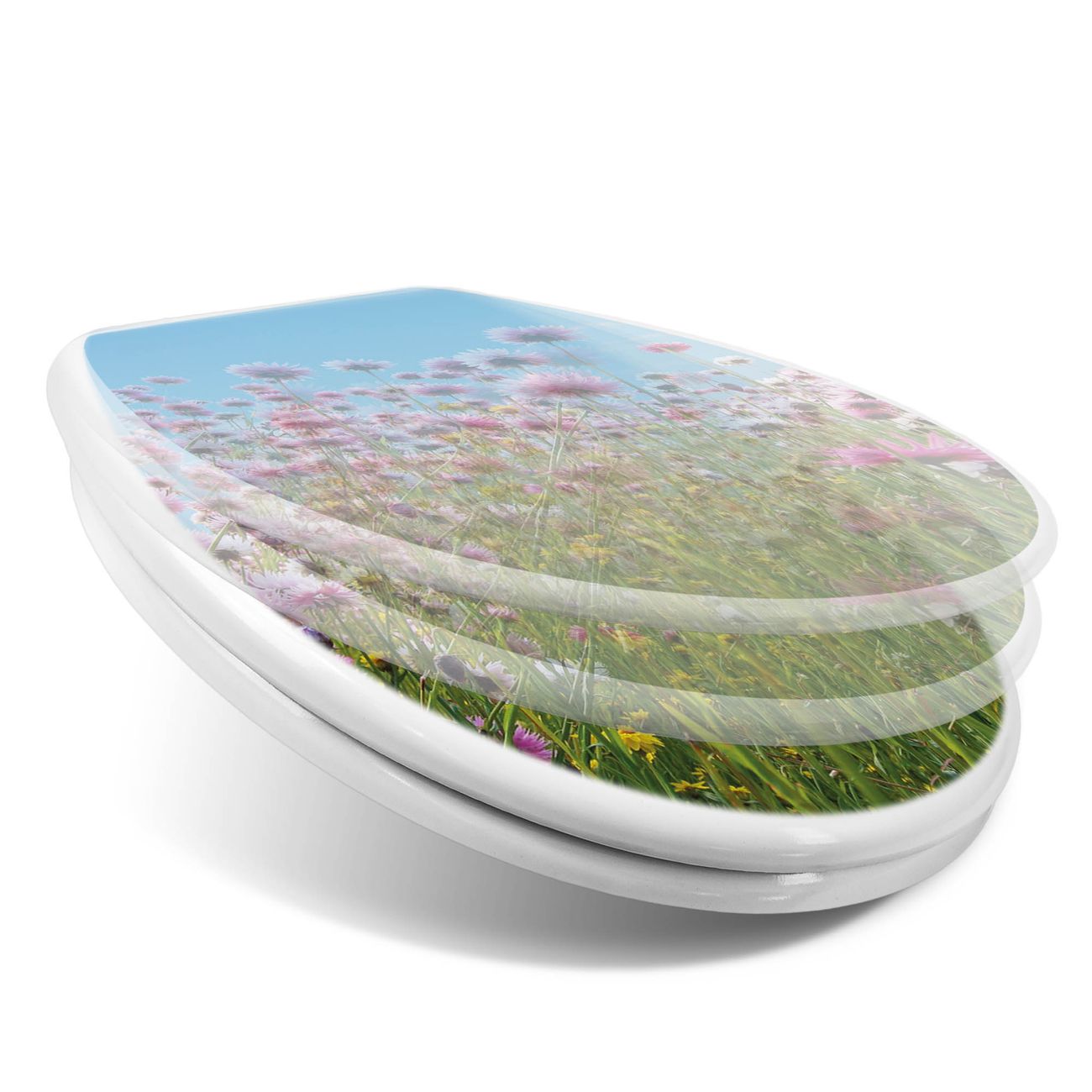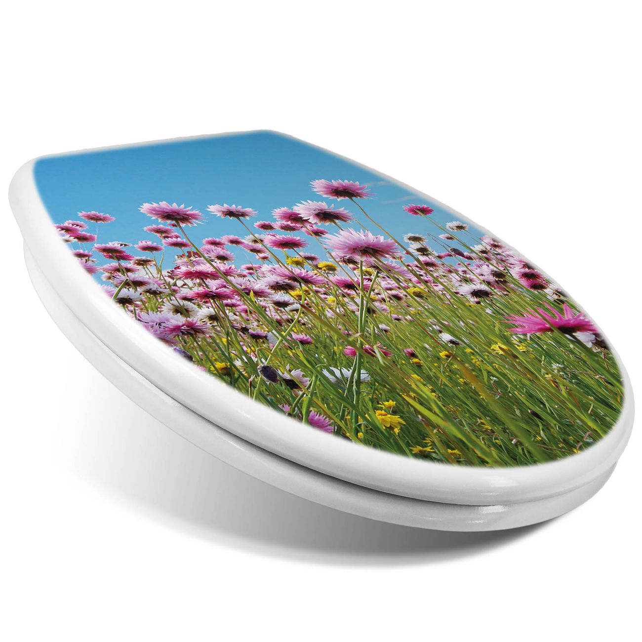 Toilettendeckel weiß mit Absenkautomatik Motiv Sommerblumen