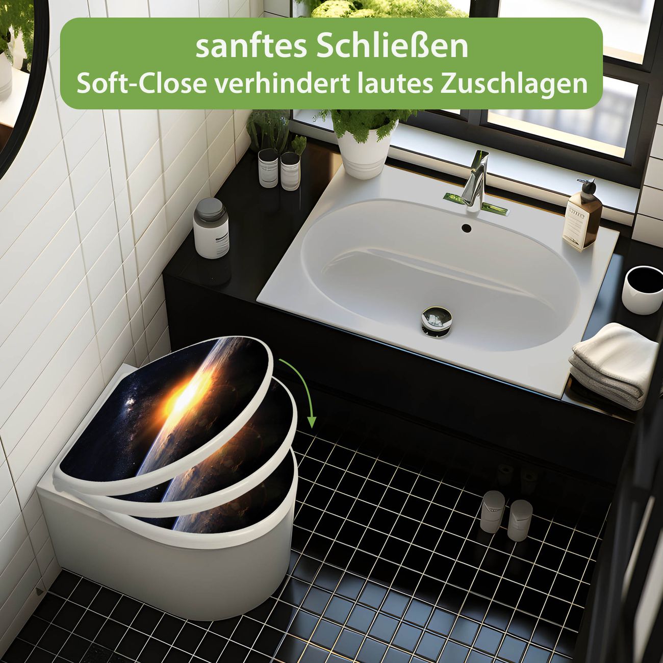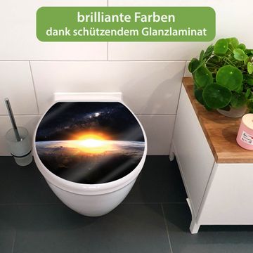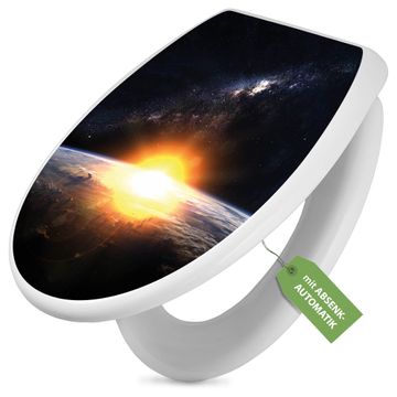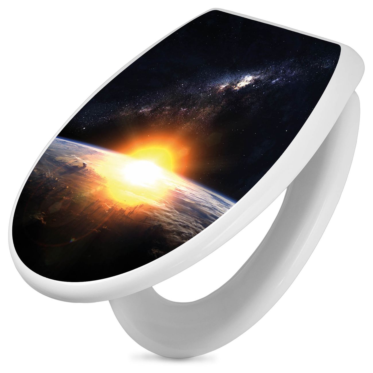 Toilettendeckel weiß mit Absenkautomatik Motiv Sonne im Weltall