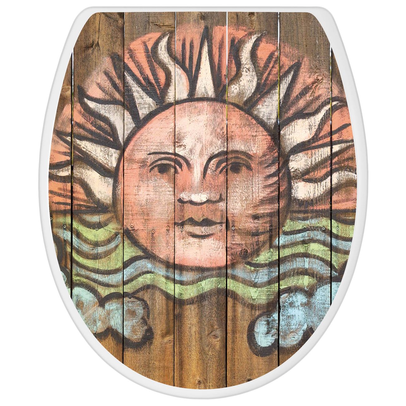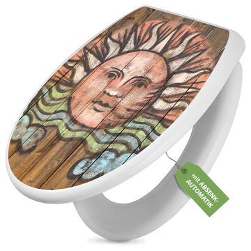 Toilettendeckel weiß mit Absenkautomatik Motiv Sonne