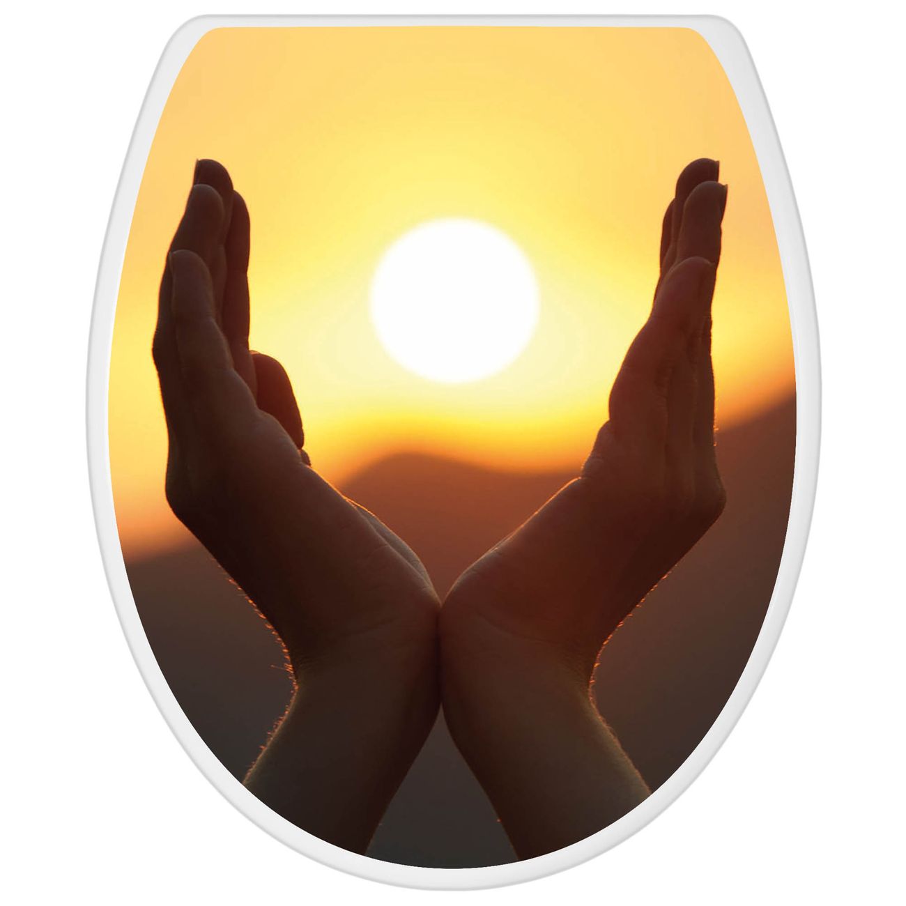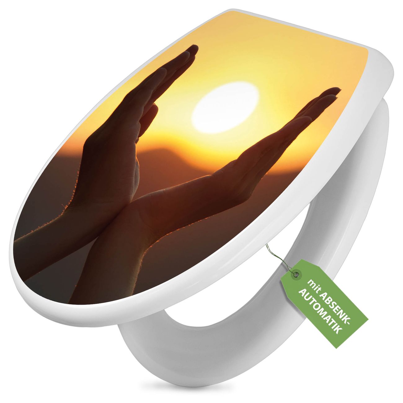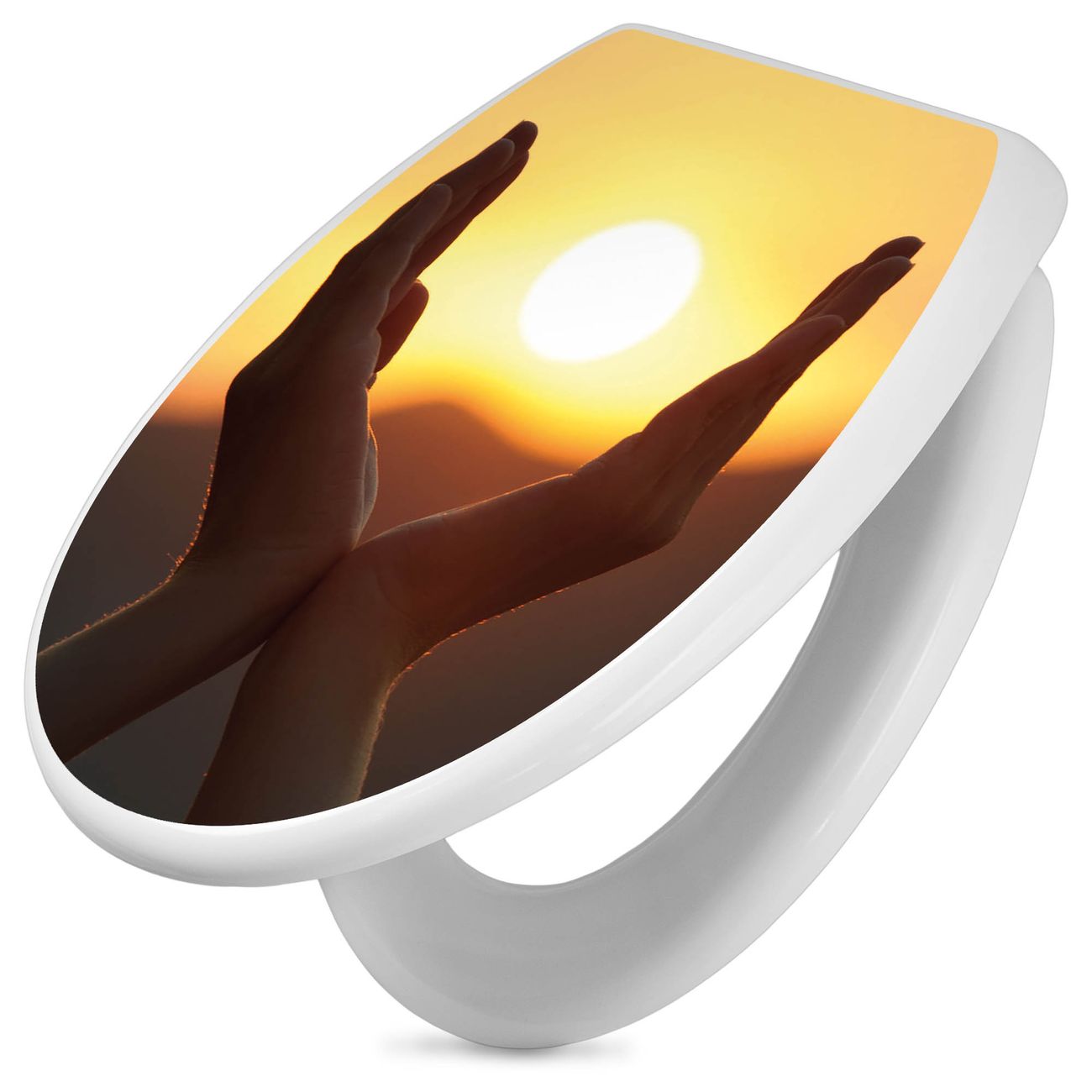 Toilettendeckel weiß mit Absenkautomatik Motiv Sonnenanbeter