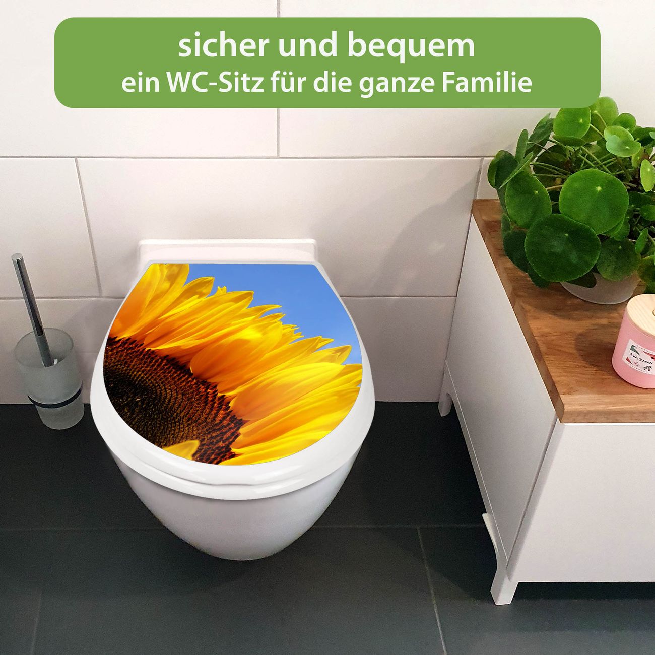 Toilettendeckel weiß mit Absenkautomatik Motiv Sonnenblume