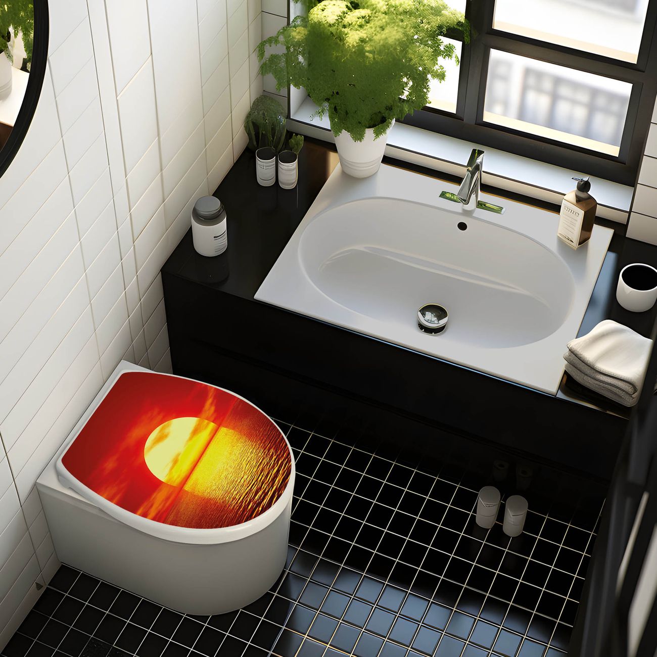 Toilettendeckel weiß mit Absenkautomatik Motiv Sonnenuntergang