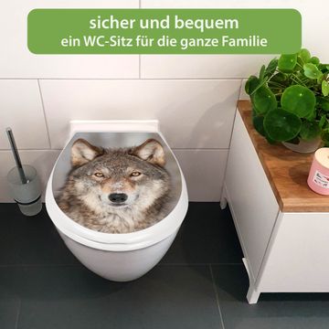 FUNKTION:Mit dem banjado Familien WC Sitz mit Absenkautomatik und dem Motiv Motiv Soraya verbinden Sie Design mit Funktionalität. Sie erhalten den Toilettendeckel in bewährt guter Qualität mit Montagematerial passend auf alle Euro-WC-Becken. Die Gesamtgröße beträgt 37,1cm x 44,9cm x 5cm, die Grundfarbe ist weiß.</p> DESIGN:Der Klodeckel in weiß mit Motiv Motiv Soraya hat eine ansprechende Optik, eine besondere Form und ist sehr stabil. Das Motiv besteht aus einer farbbrillianten Motivfolie, die durch ein Schutzlaminat zusätzlich vor Kratzern schützt. Der integrierte Kindersitz fügt sich harmonisch ein. DETAILS:Der Toilettensitz mit Soft Close besteht aus hochwertigem Polypropylen, ist geruchlos, ungiftig und kann mit handelsüblicher Seife gereinigt werden. Die Montage kann von von oben oder von unten erfolgen und ist kinderleicht. NUTZEN:Mit Hilfe der detaillierten Aufbauanleitung ermöglichen wir eine schnelle und unkomplizierte Montage. Die banjado Klobrille ist universell geeignet für alle Euro-WC-Schüsseln. Der Kindersitz kann unkompliziert entfernt werden. BANJADO:Ihr WC-Deckel wird in Sachsen in einer kleinen Manufaktur von Hand veredelt. Die Motivfolie ist lösungsmittelfrei und schutzlaminiert für einen langen Halt. Wir wünschen viel Freude bei der Auswahl eines schönen Motivs.