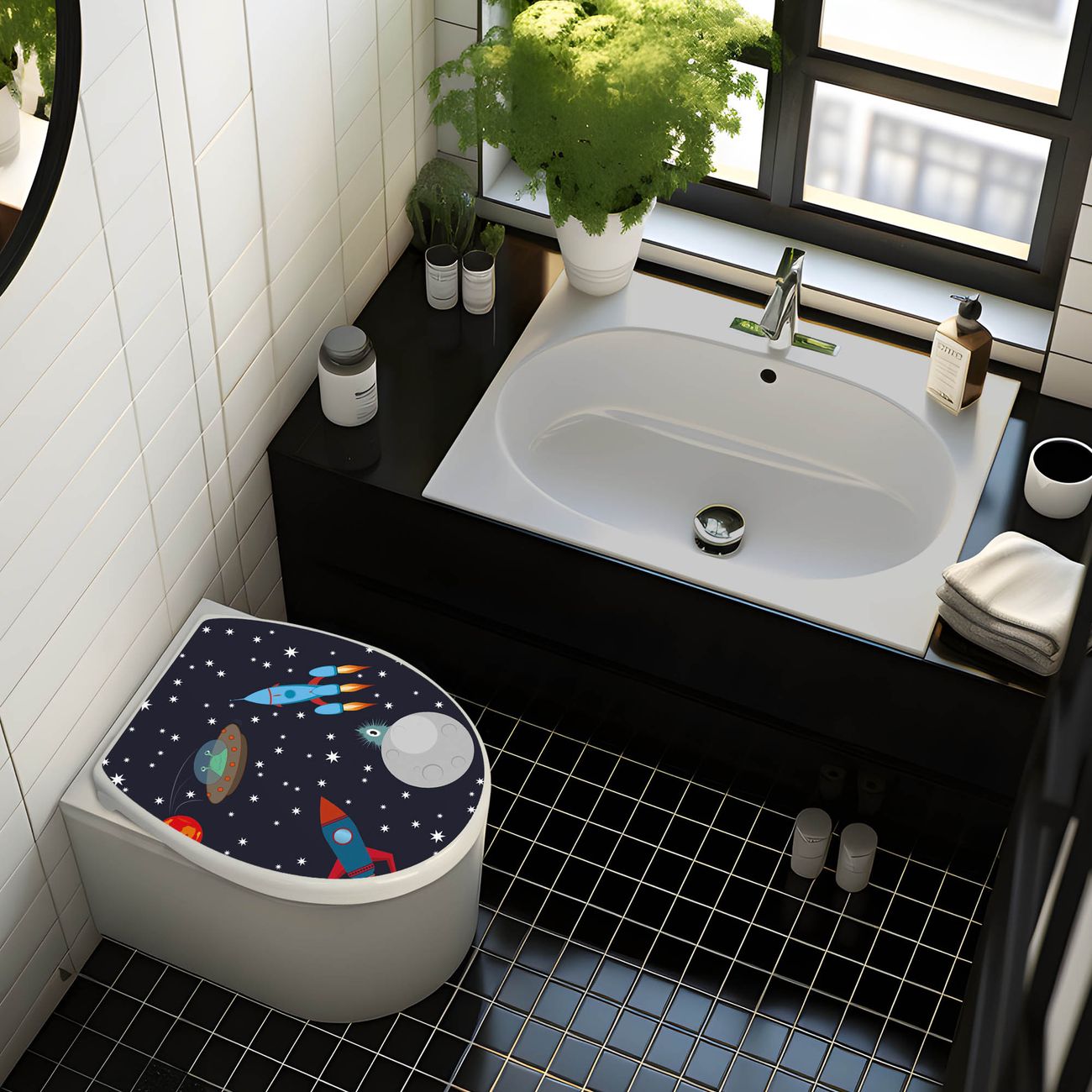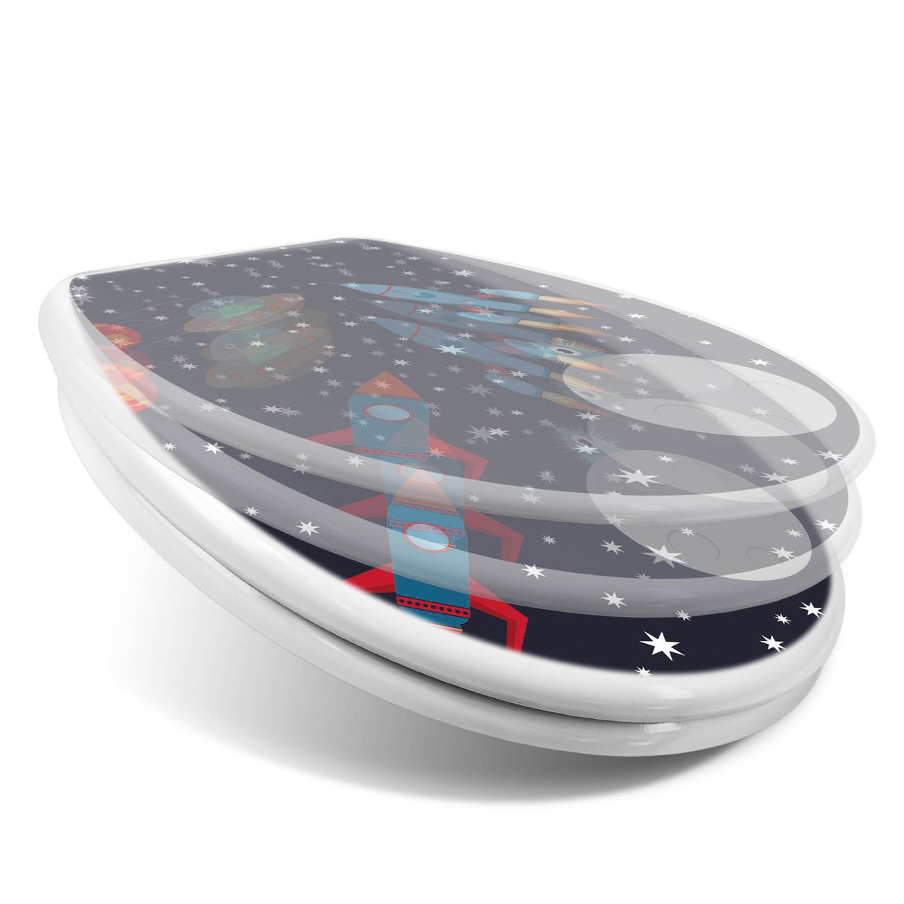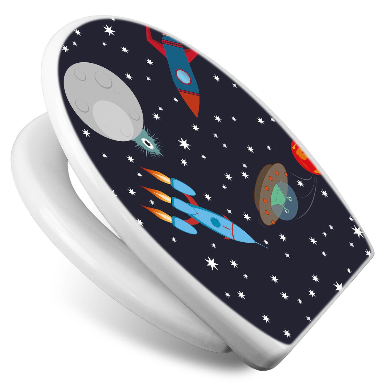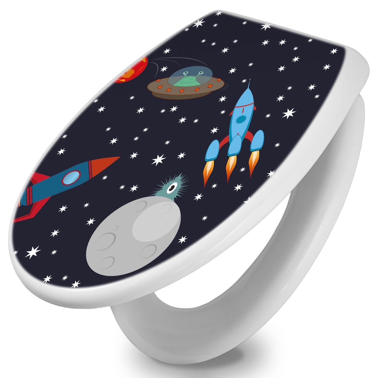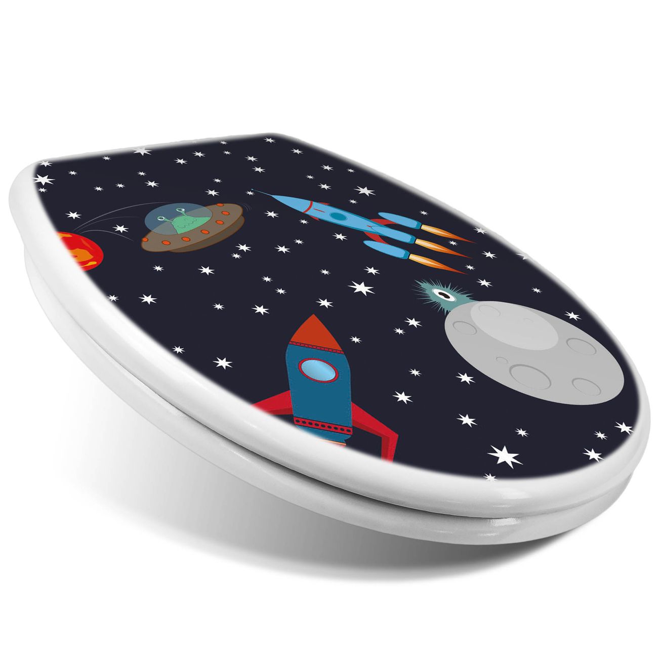 Toilettendeckel weiß mit Absenkautomatik Motiv Space Traffic