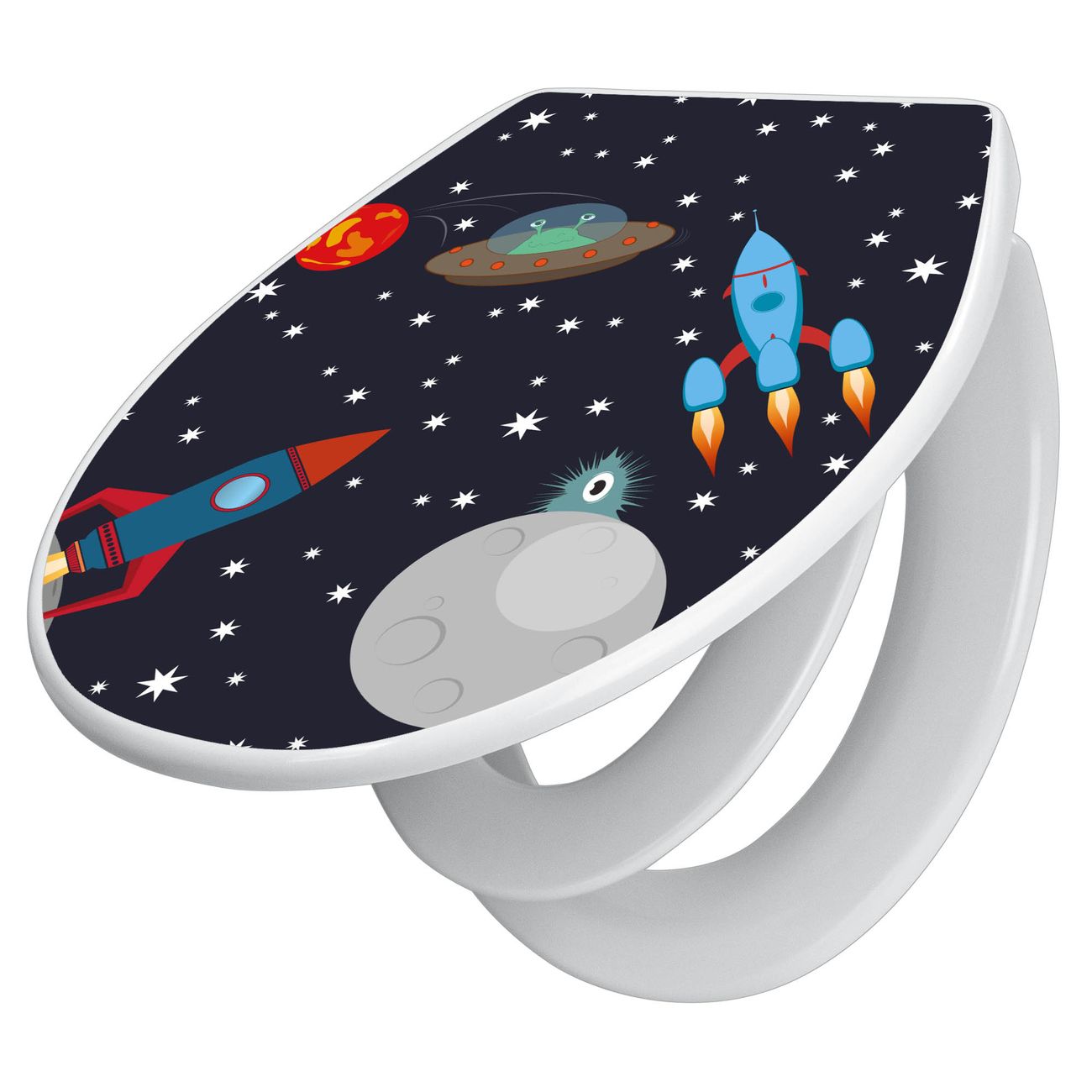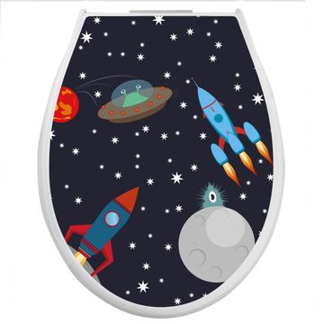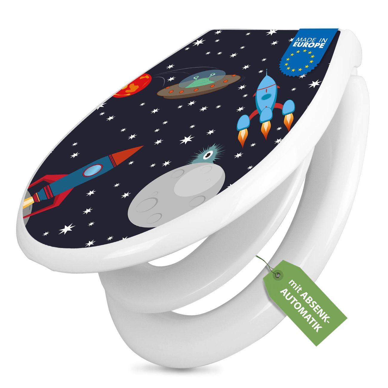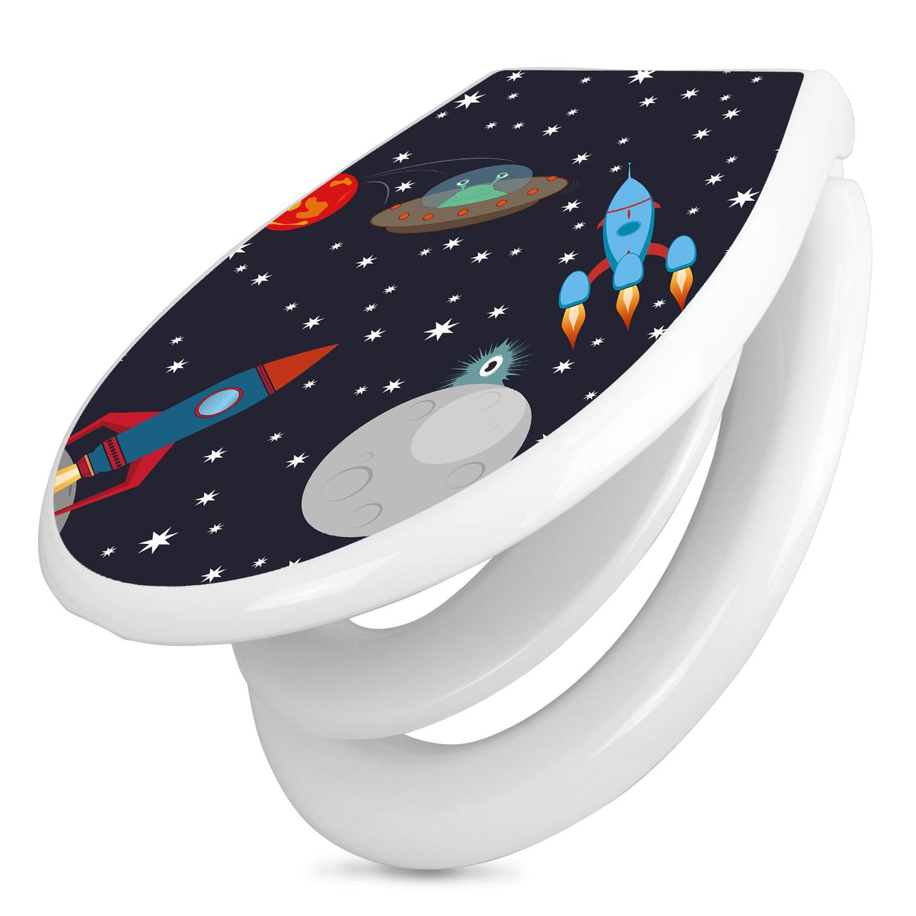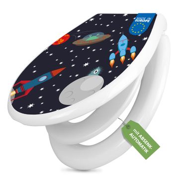 Toilettendeckel weiß mit Absenkautomatik Motiv Space Traffic