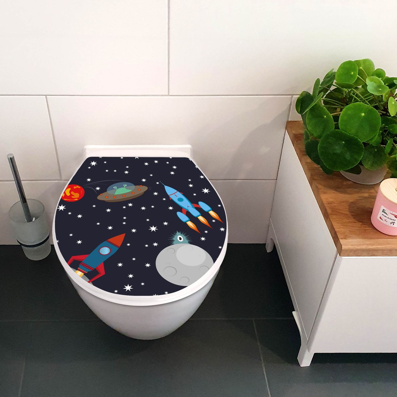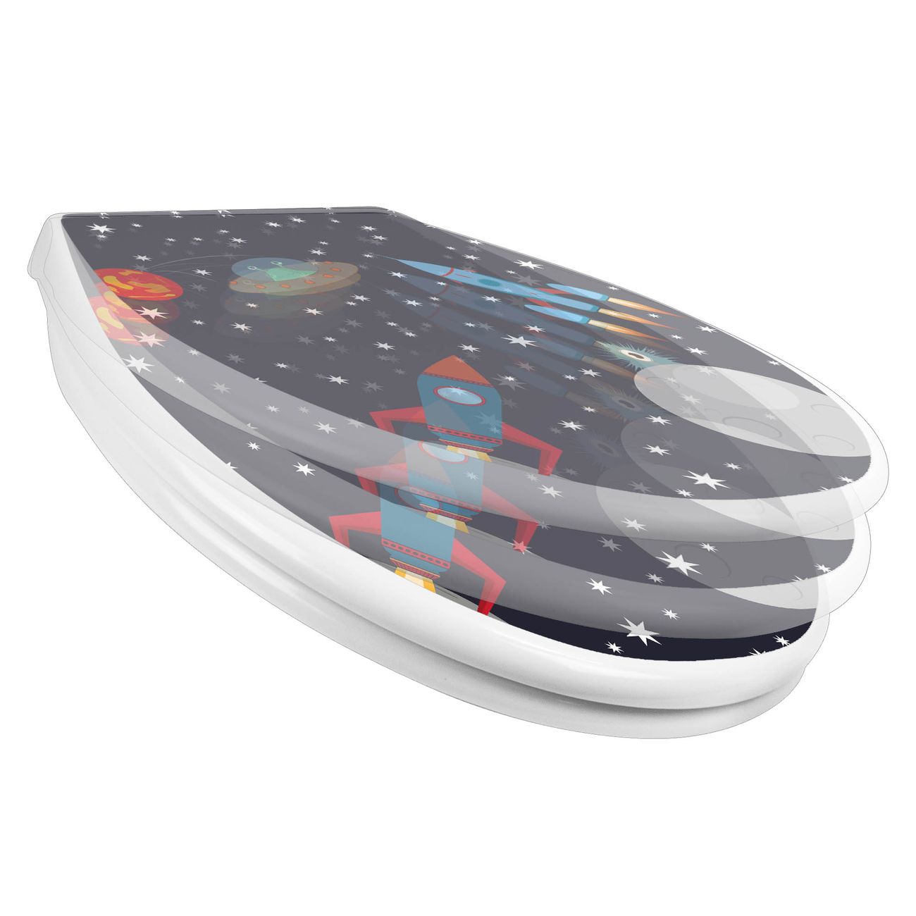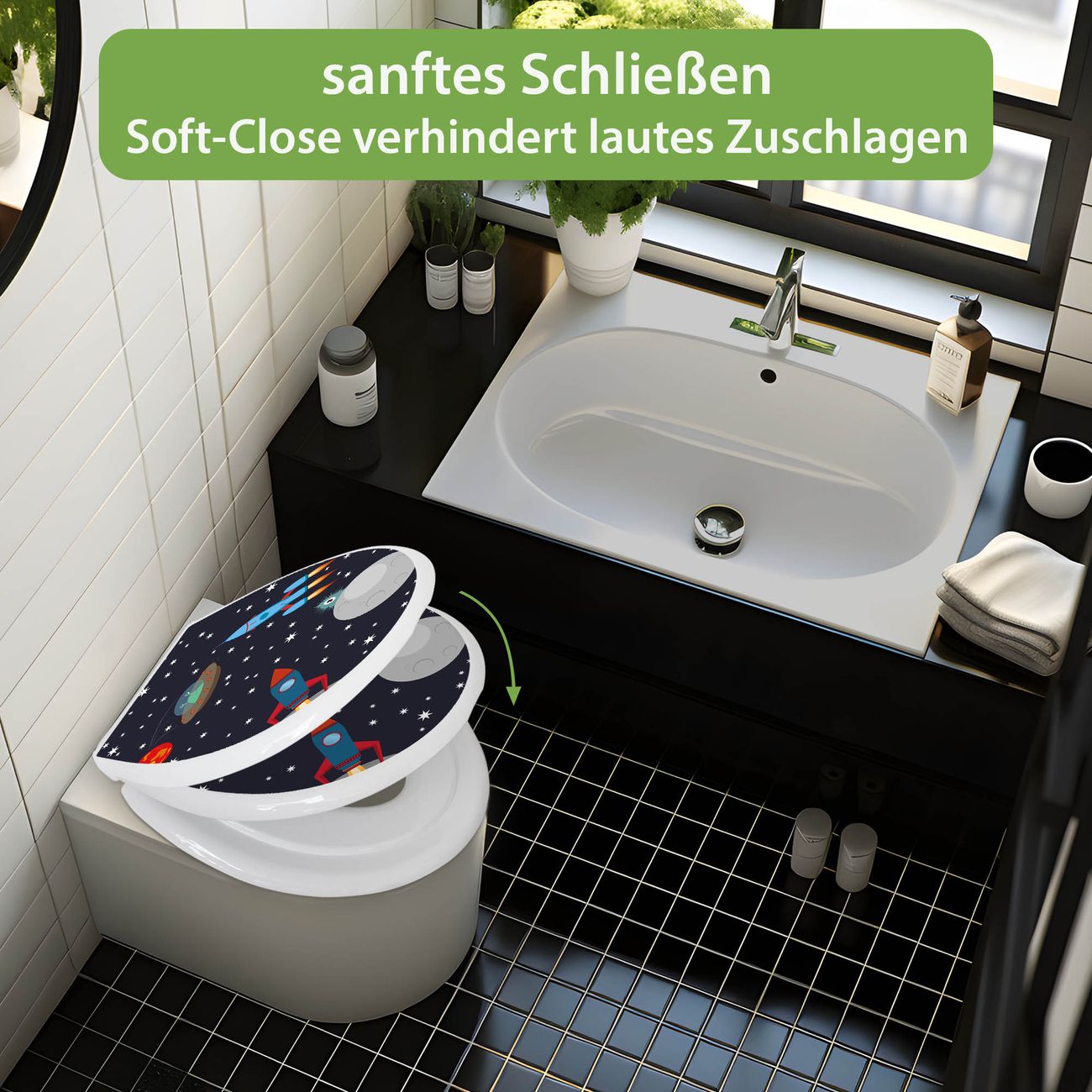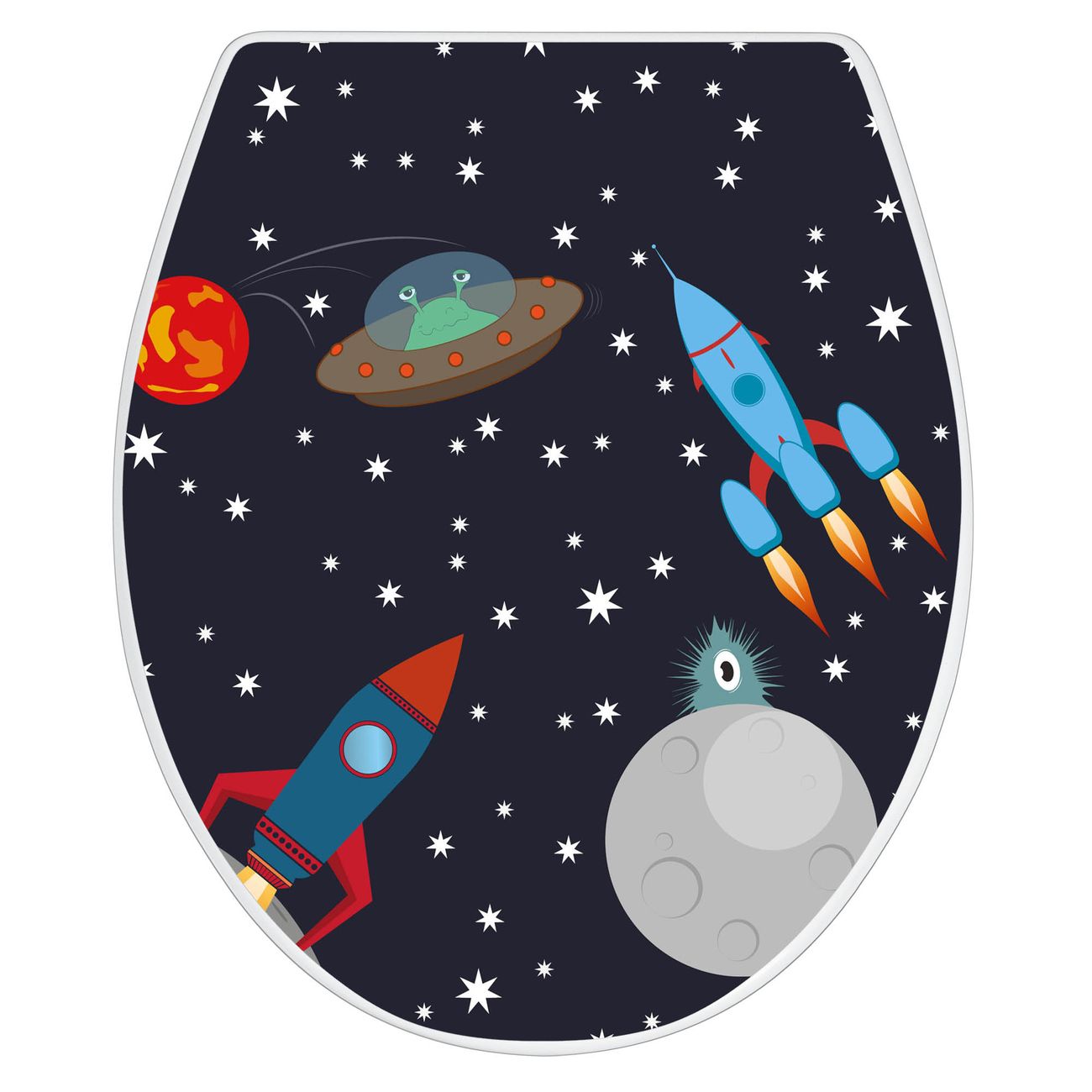 Toilettendeckel weiß mit Absenkautomatik Motiv Space Traffic