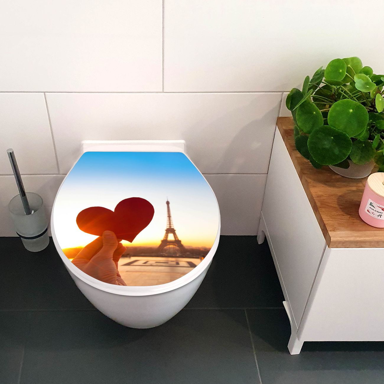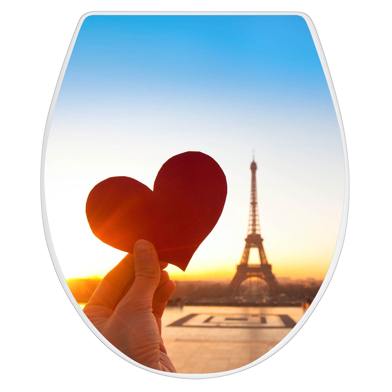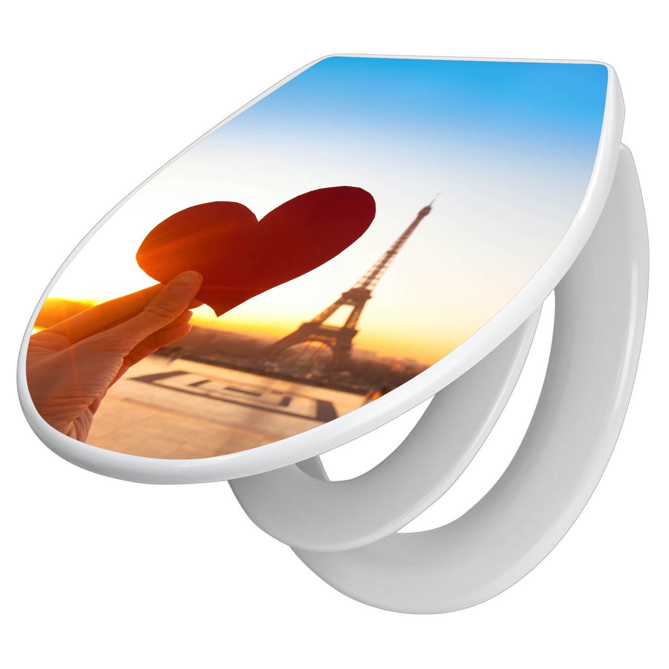 Toilettendeckel weiß mit Absenkautomatik Motiv Stadt Der Liebe