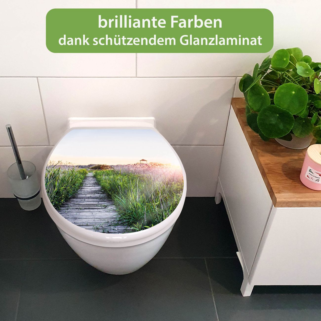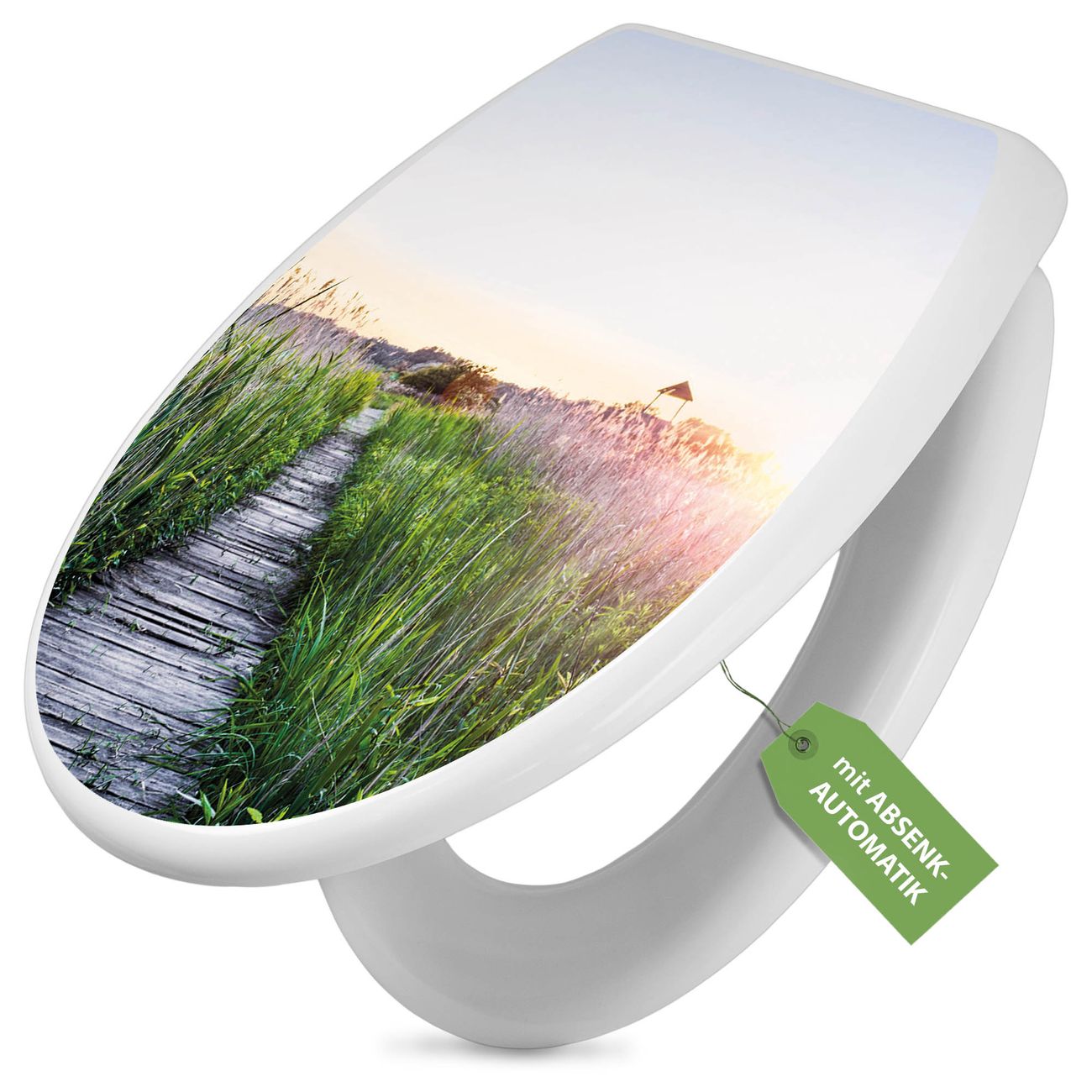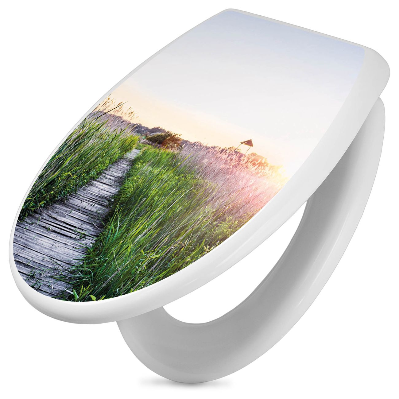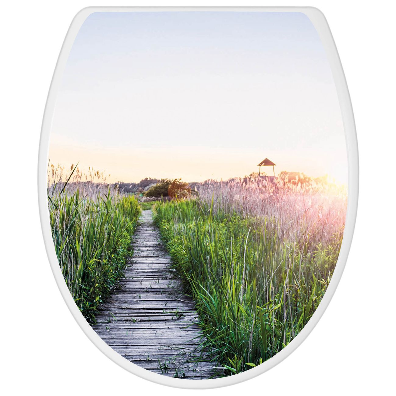 Toilettendeckel weiß mit Absenkautomatik Motiv Steg Durchs Schilf