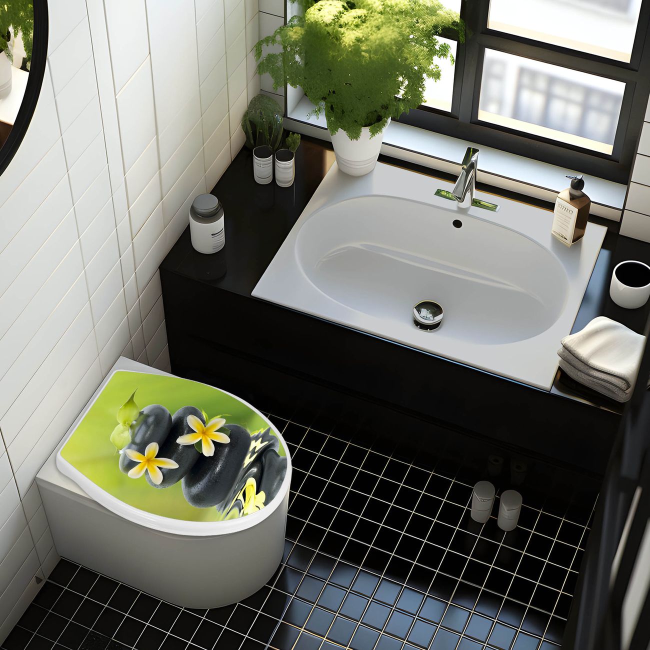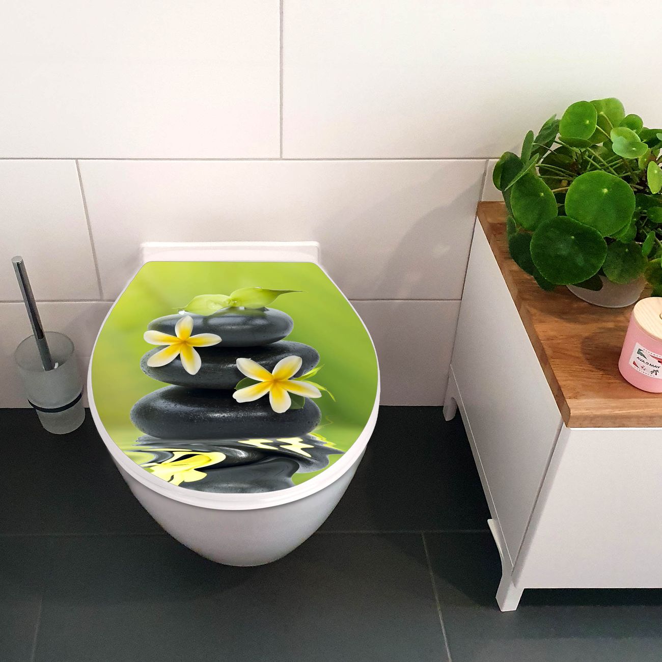Toilettendeckel weiß mit Absenkautomatik Motiv Steine & Relax 4