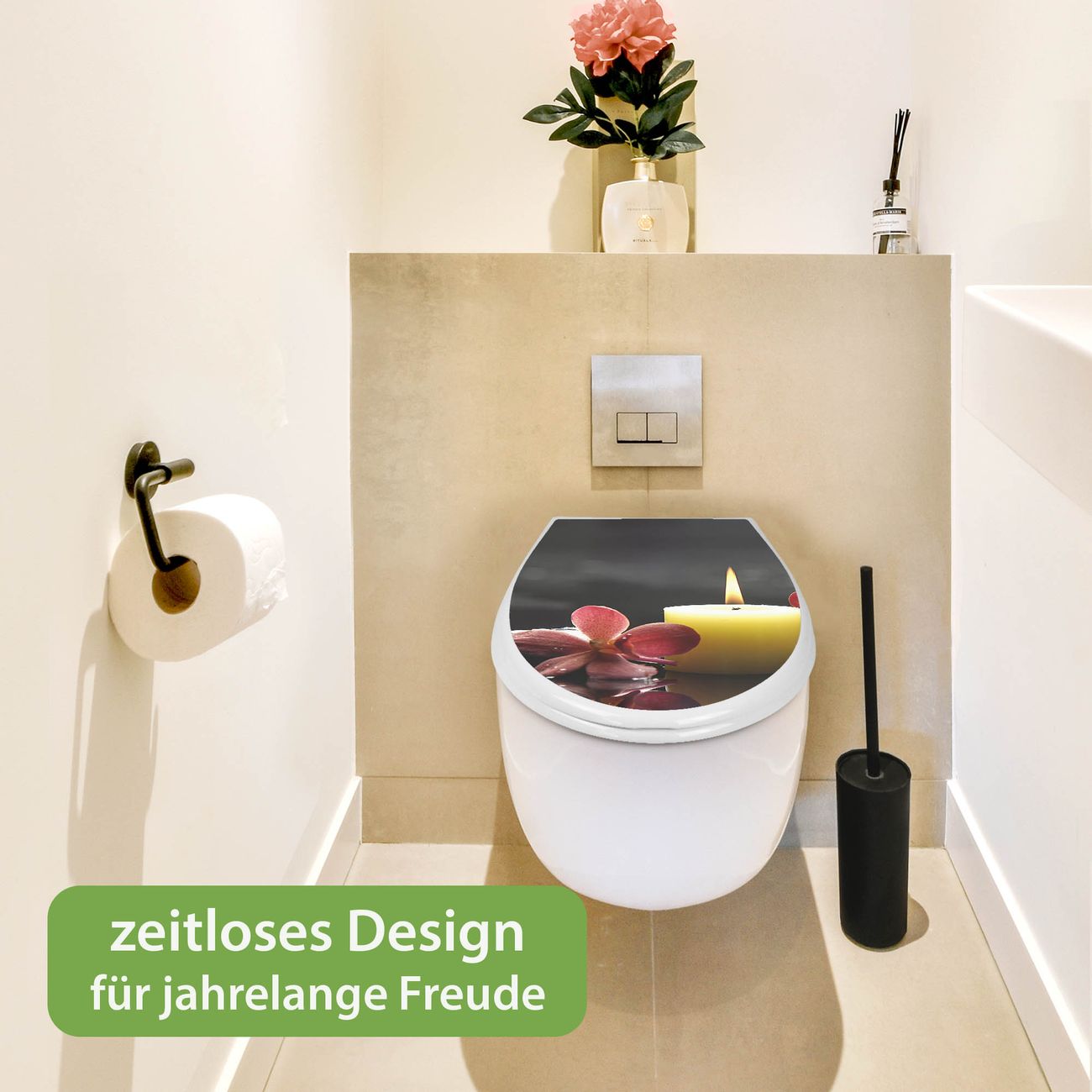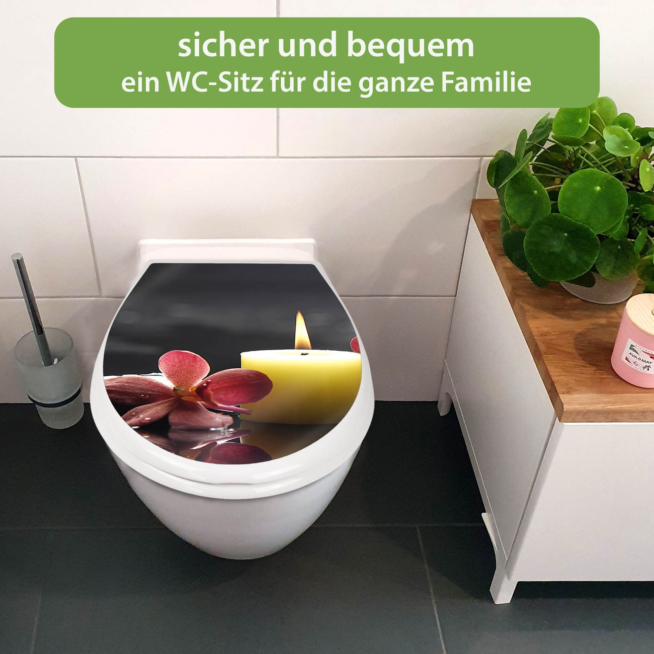 Toilettendeckel weiß mit Absenkautomatik Motiv Steine & Relax 5
