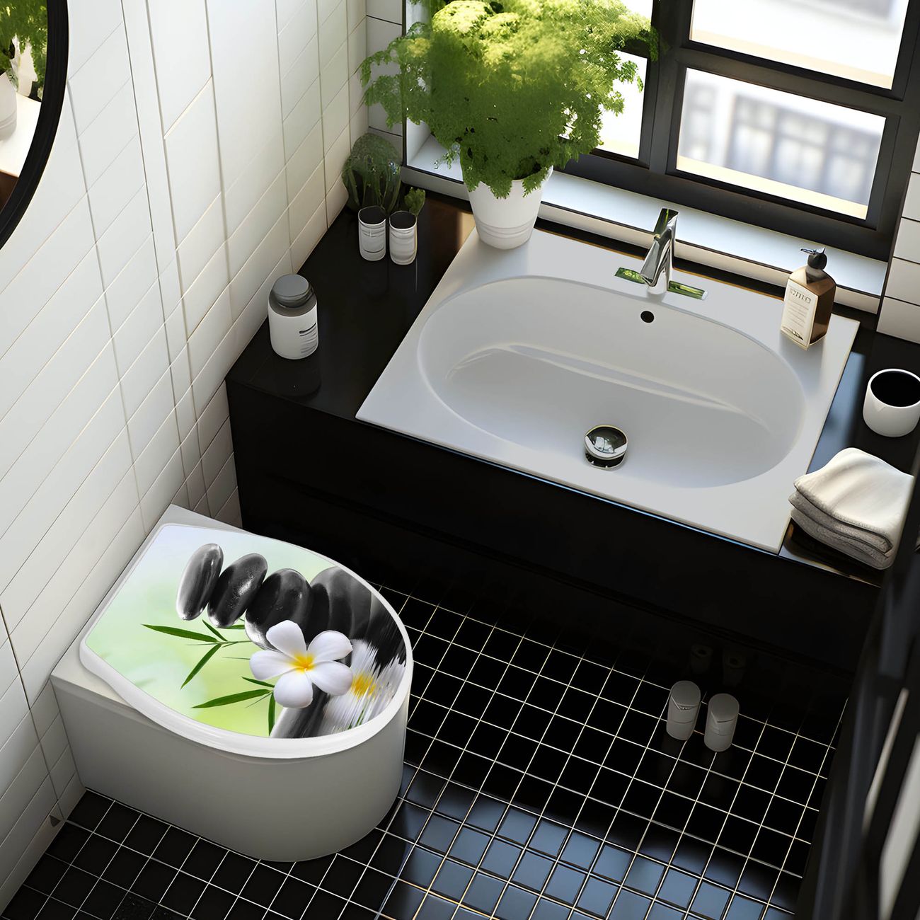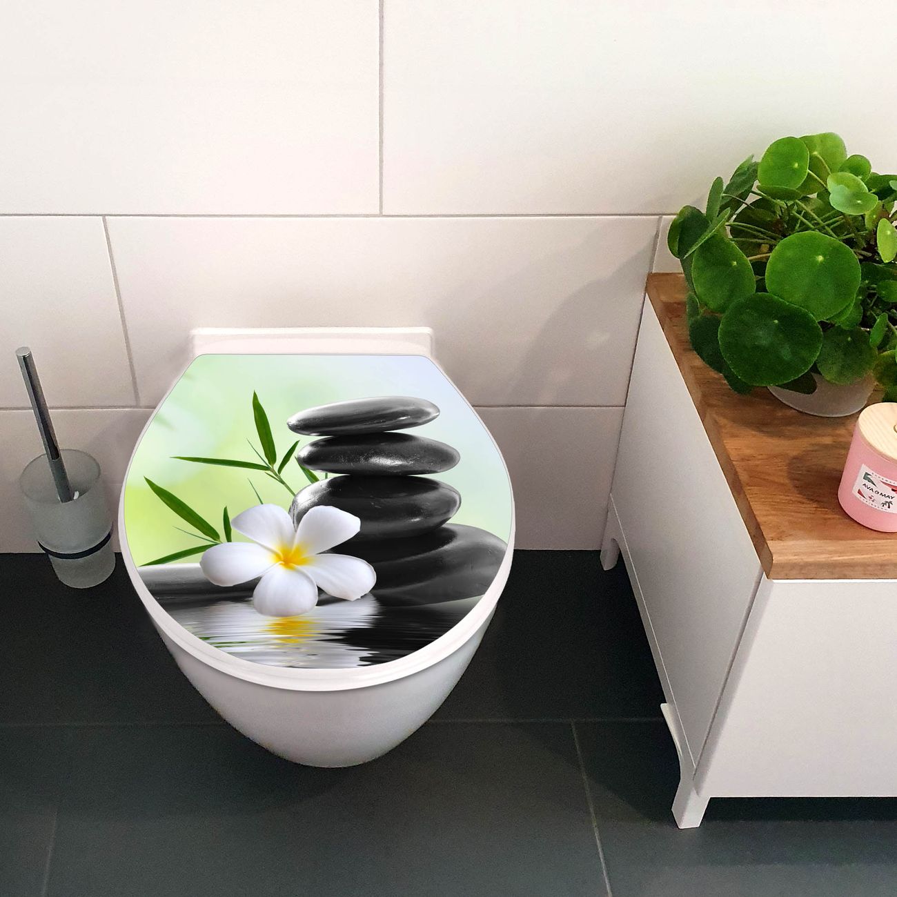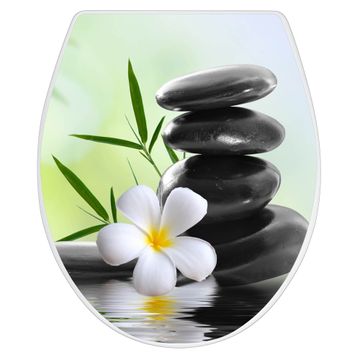 Toilettendeckel weiß mit Absenkautomatik Motiv Steine & Relax 6