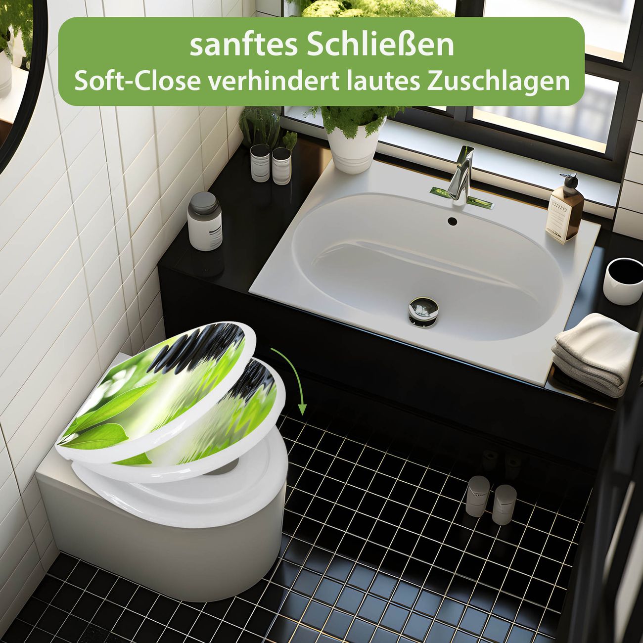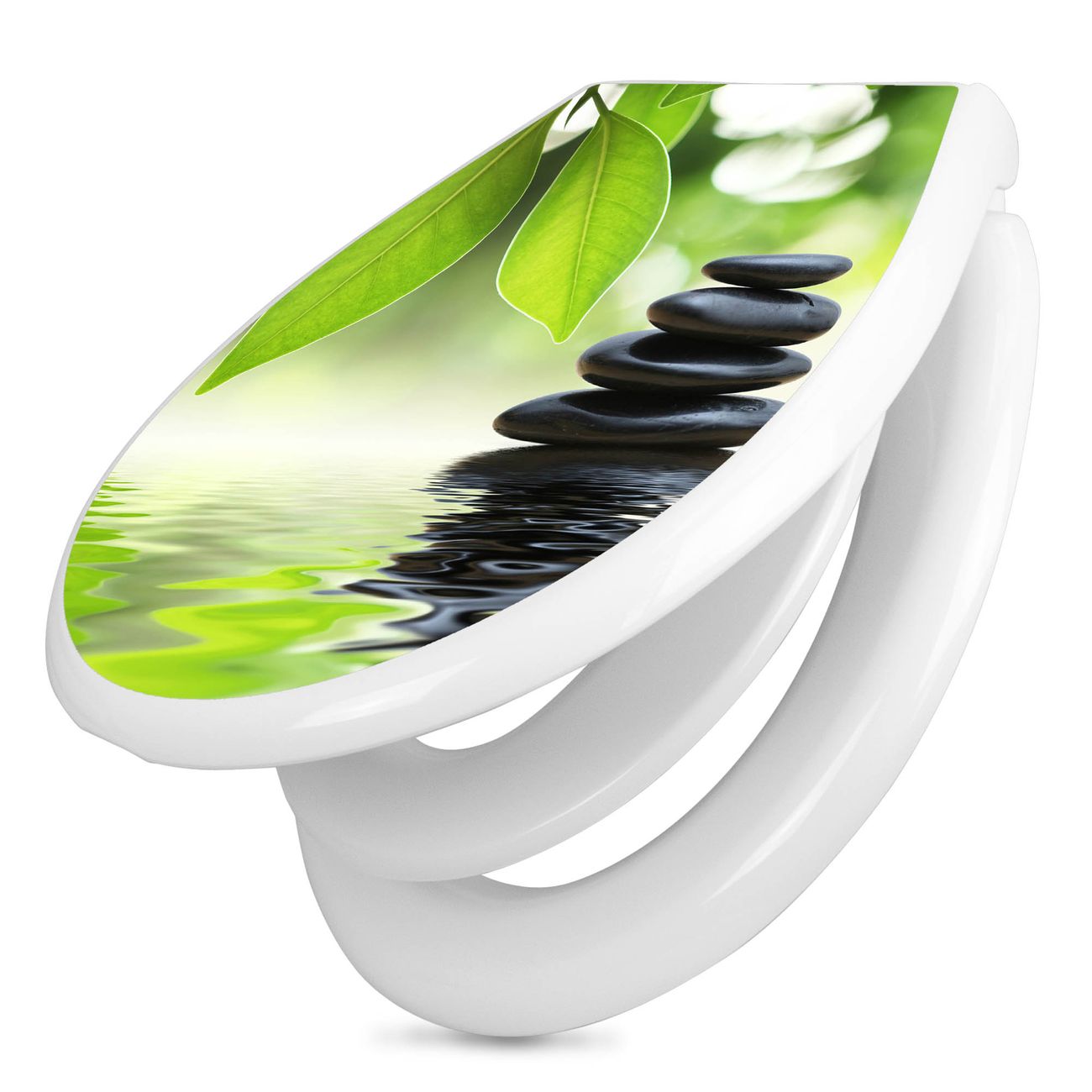 Toilettendeckel weiß mit Absenkautomatik Motiv Steine&Relax