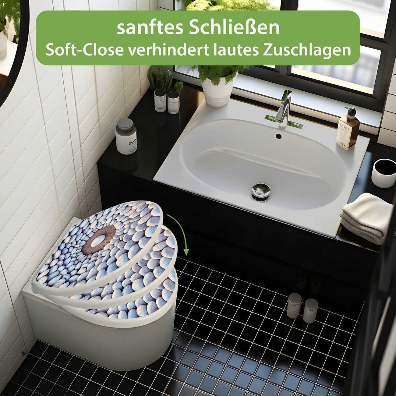 - Material: WC-Sitz und Deckel aus robustem Duroplast