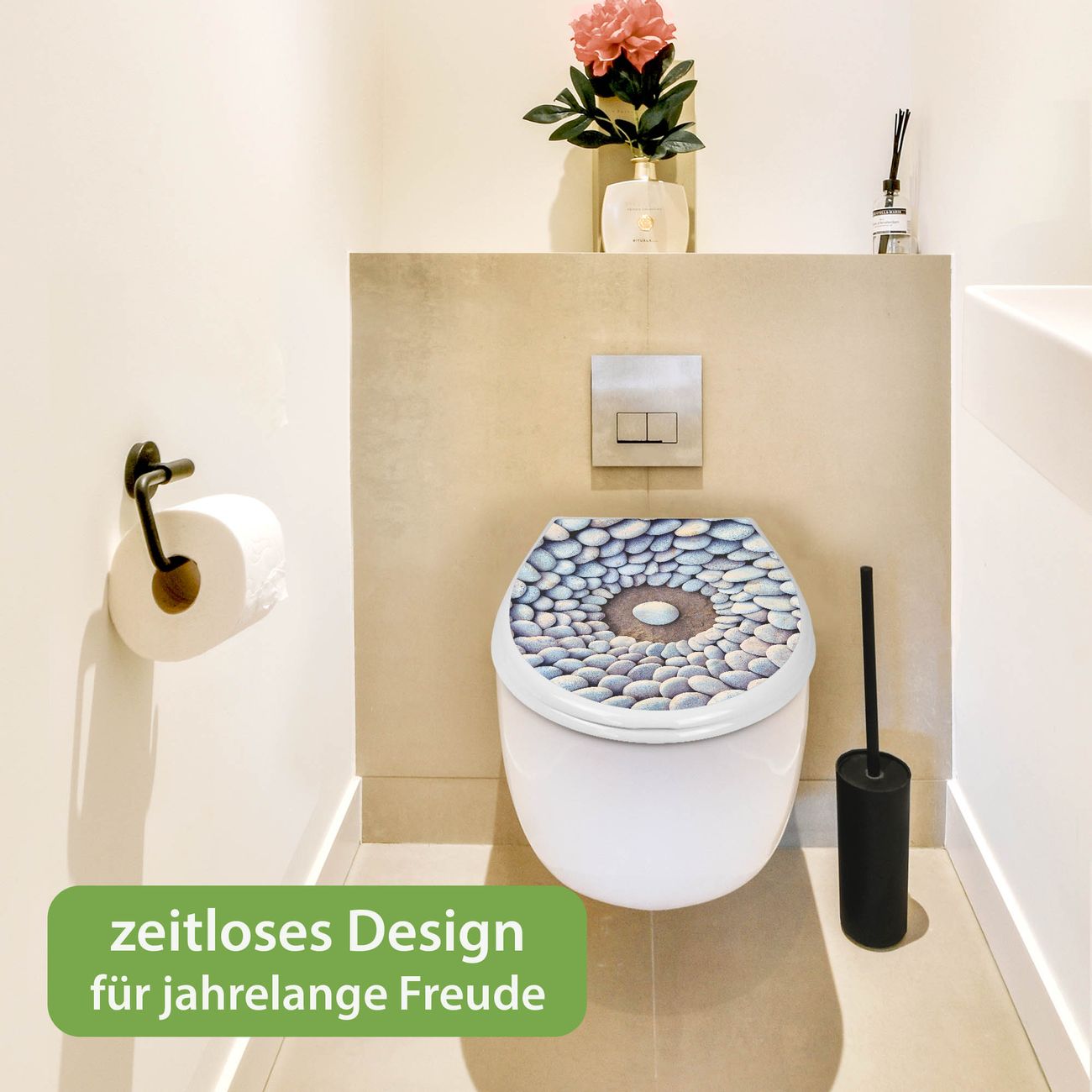 Toilettendeckel weiß mit Absenkautomatik Motiv Steinkreis