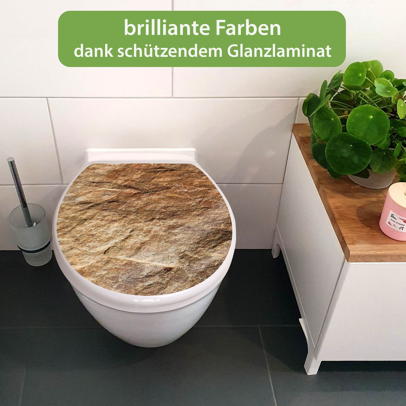 Toilettendeckel weiß mit Absenkautomatik Motiv Steinstruktur