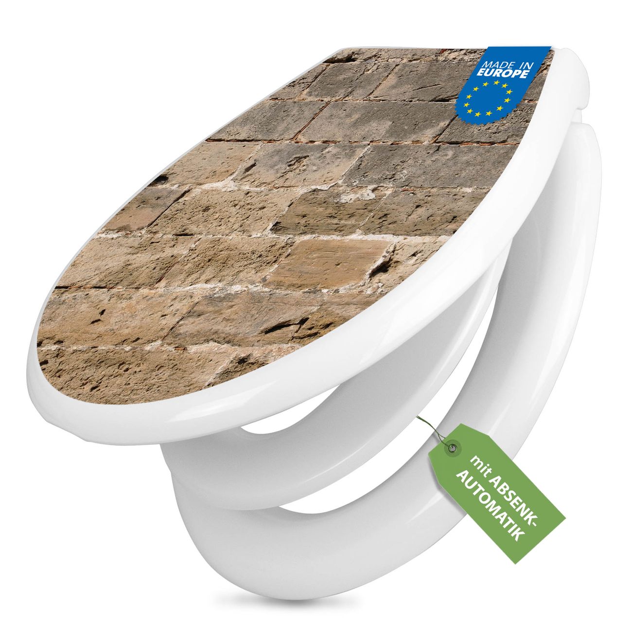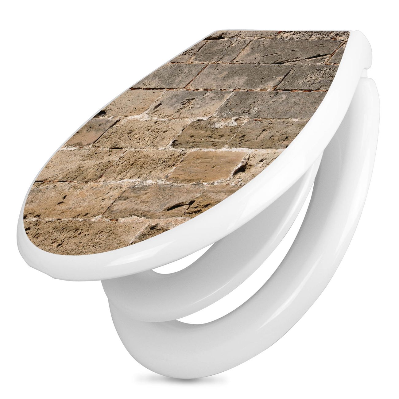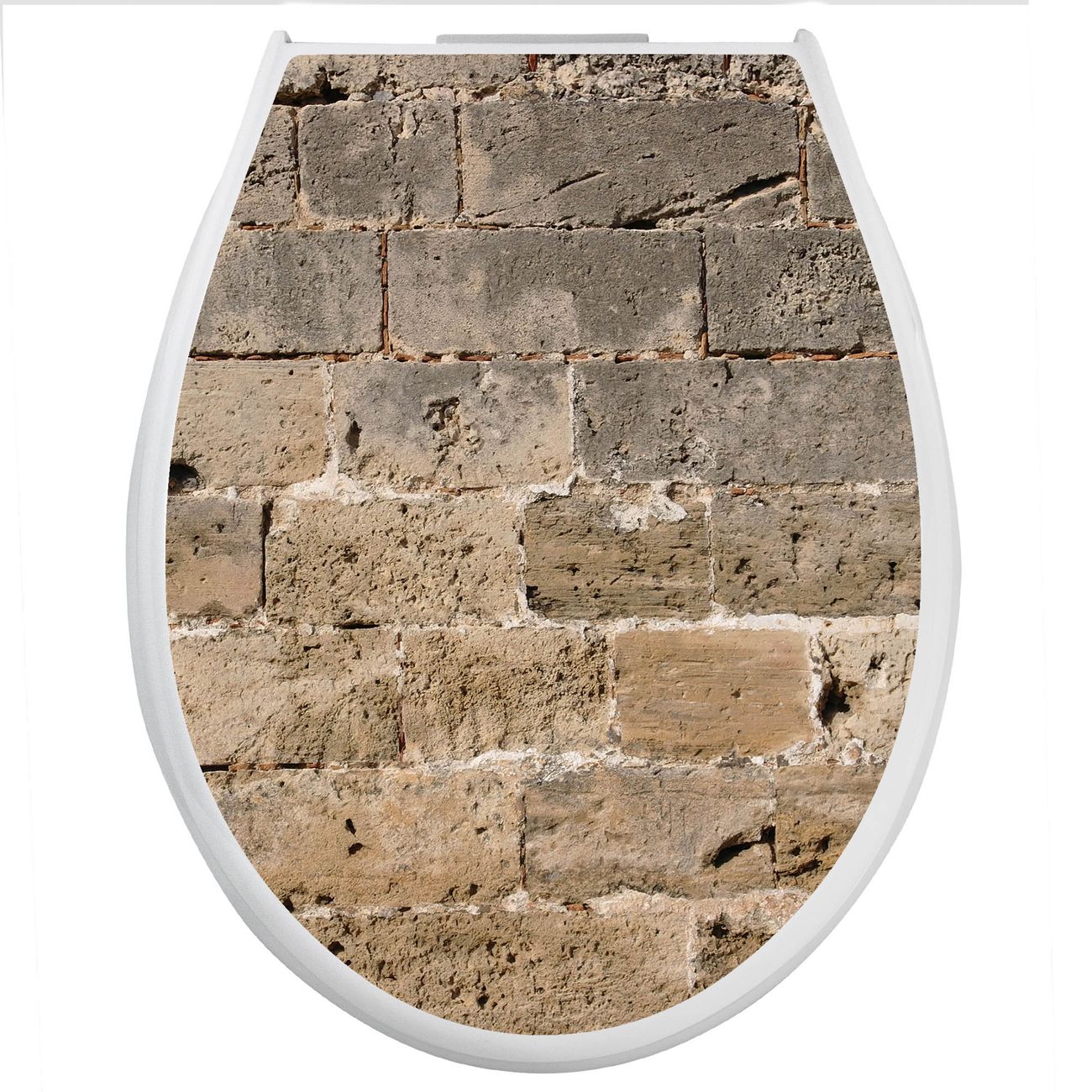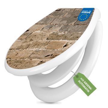 Toilettendeckel weiß mit Absenkautomatik Motiv Steinwand Antik