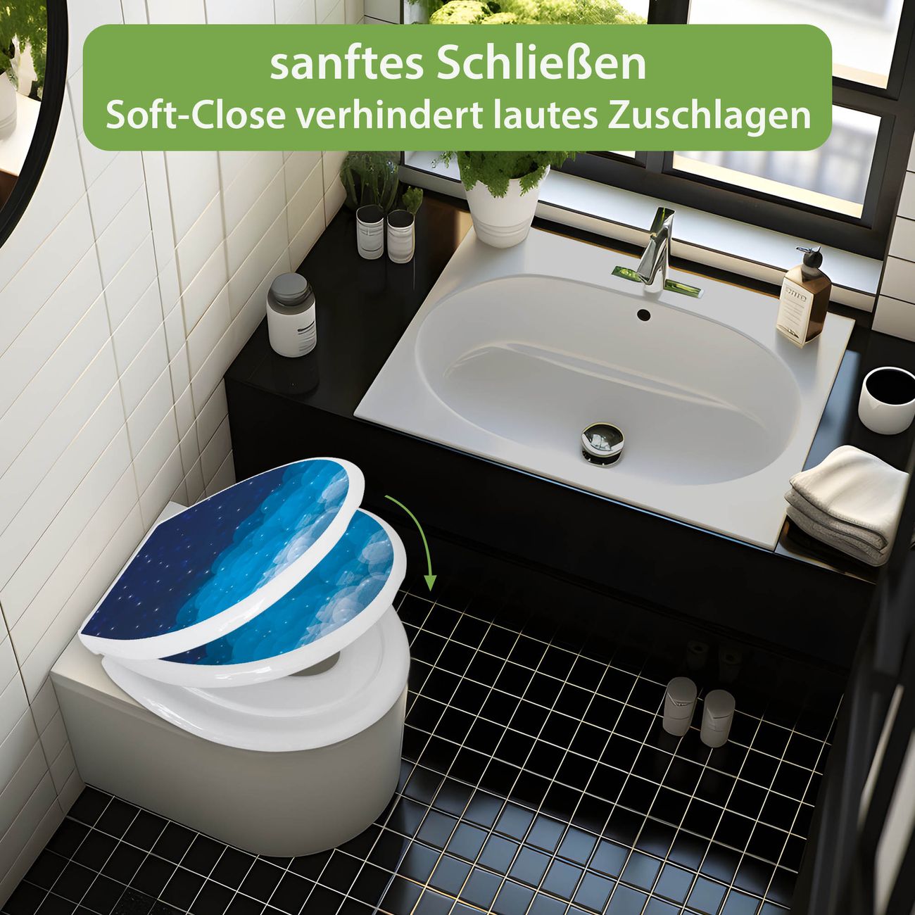 Toilettendeckel weiß mit Absenkautomatik Motiv Sternenhimmel 2