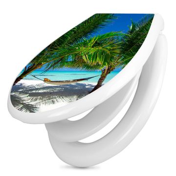 Toilettendeckel weiß mit Absenkautomatik Motiv Strand