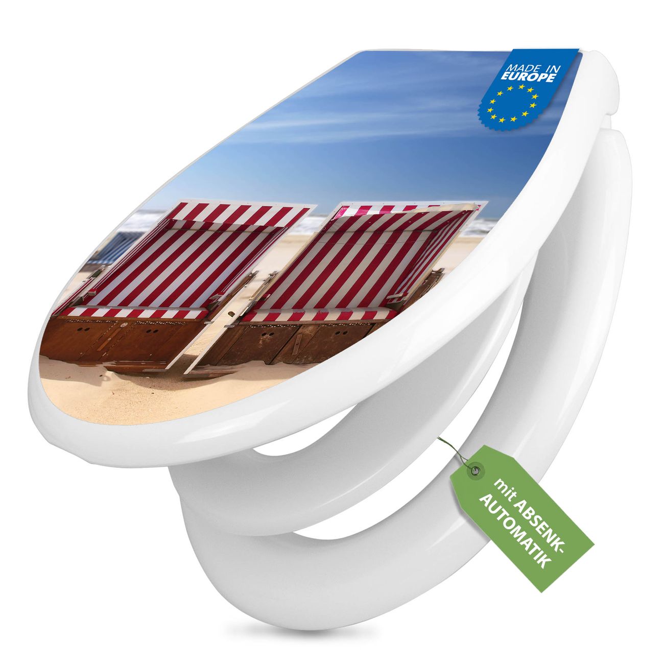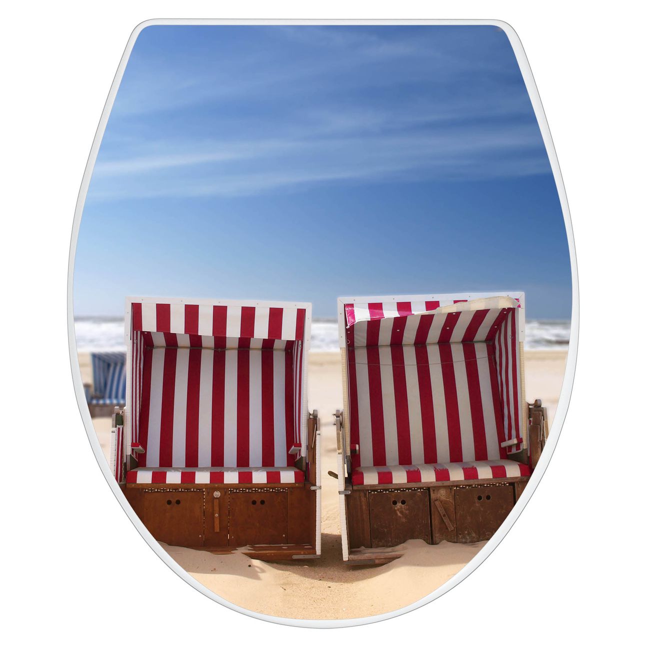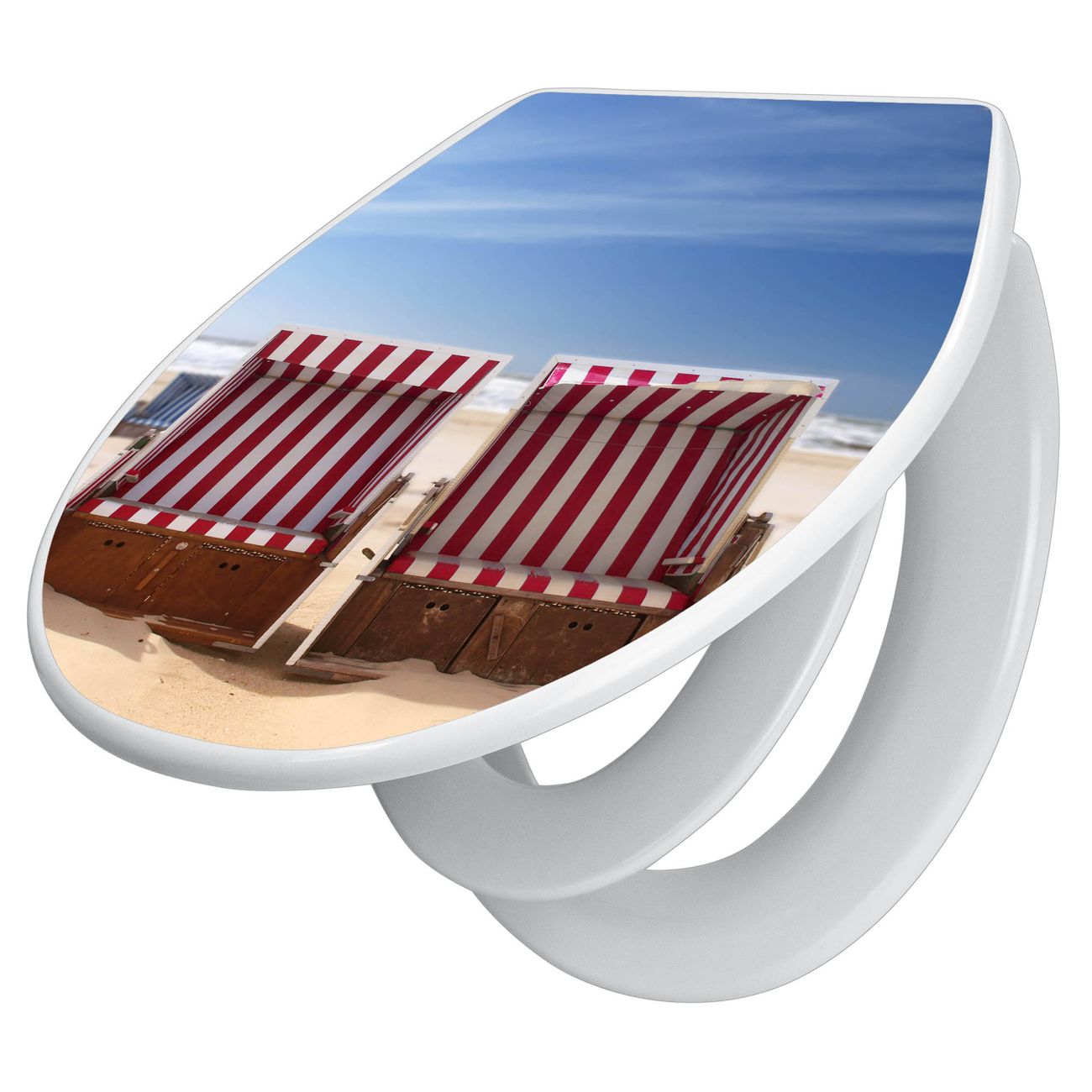 Toilettendeckel weiß mit Absenkautomatik Motiv Strandkörbe