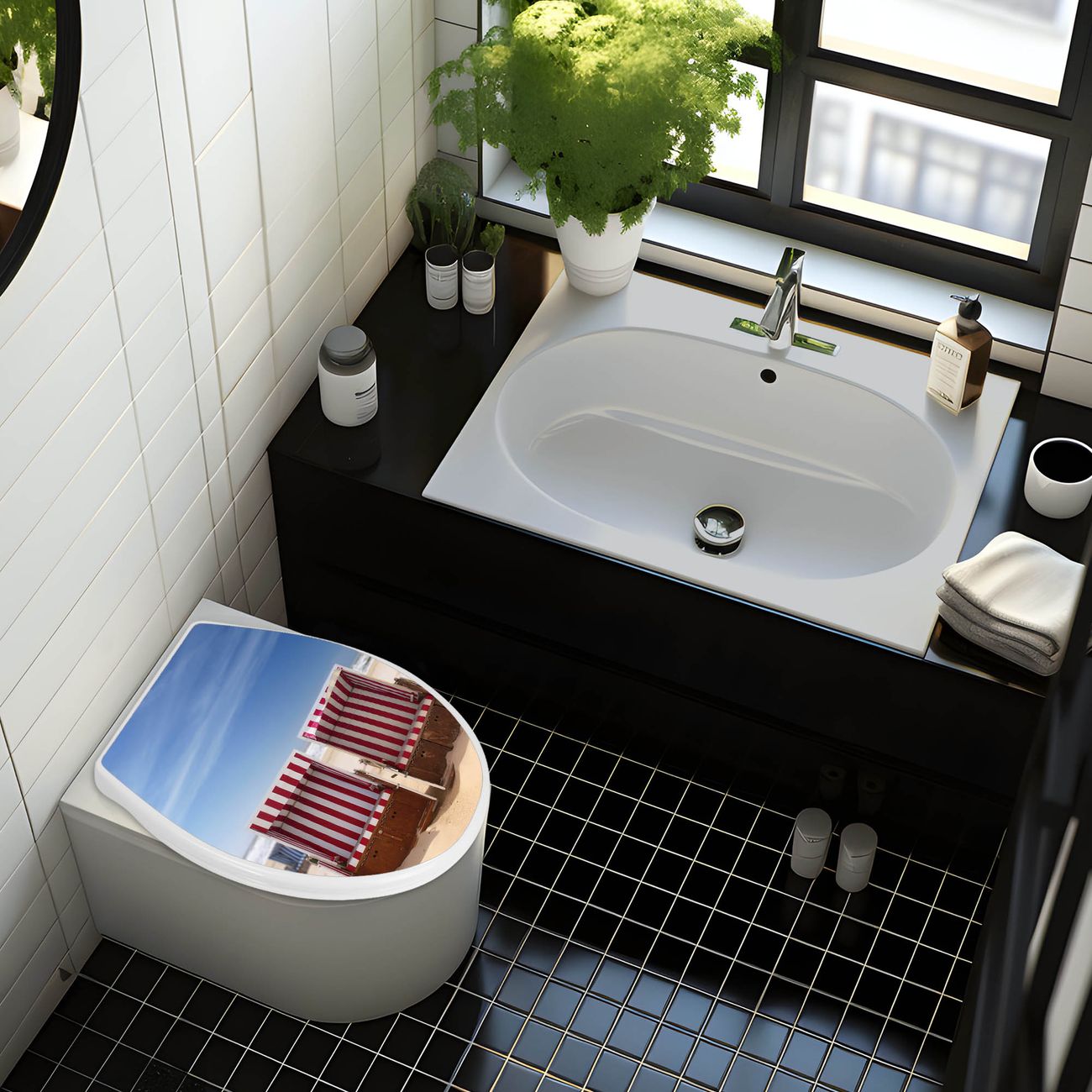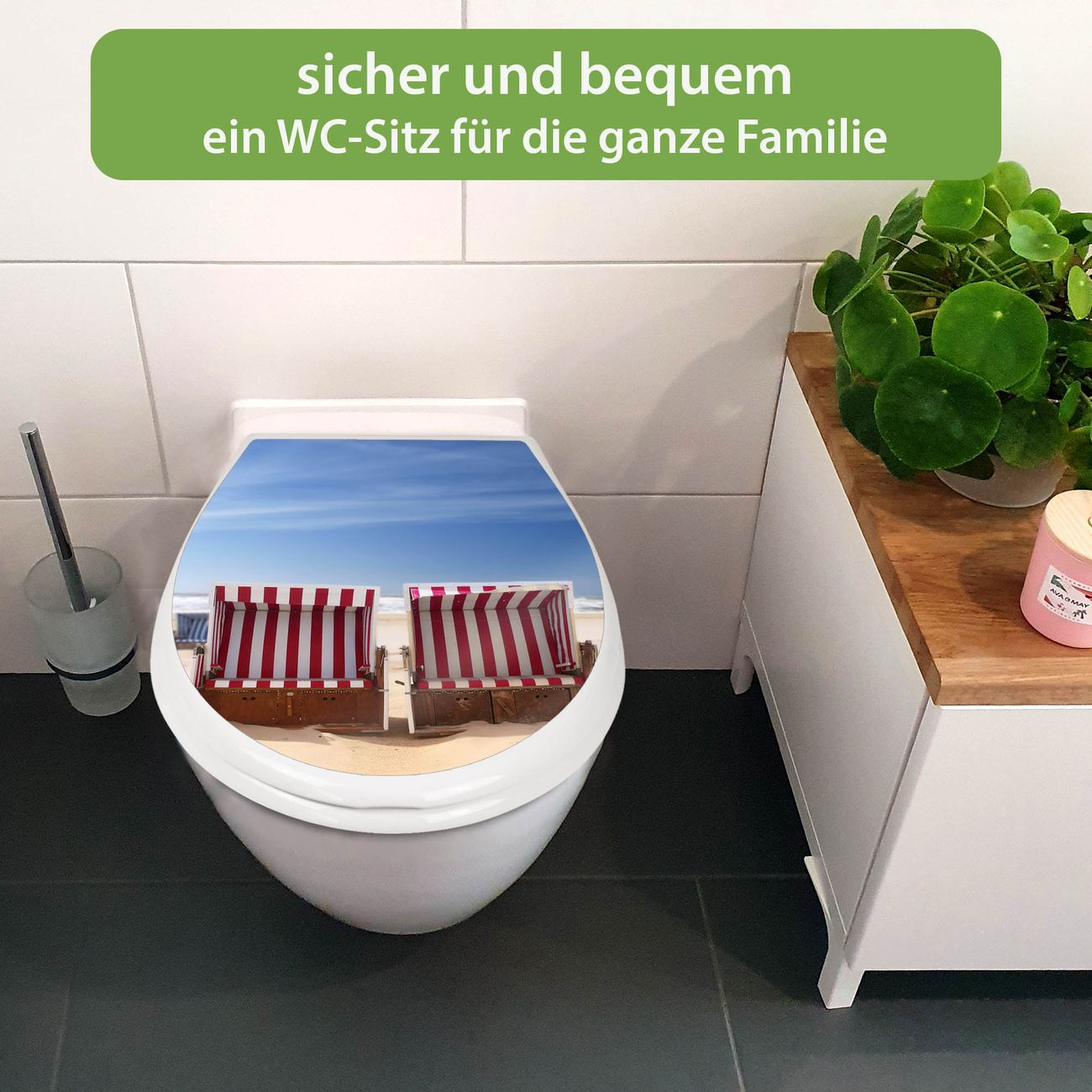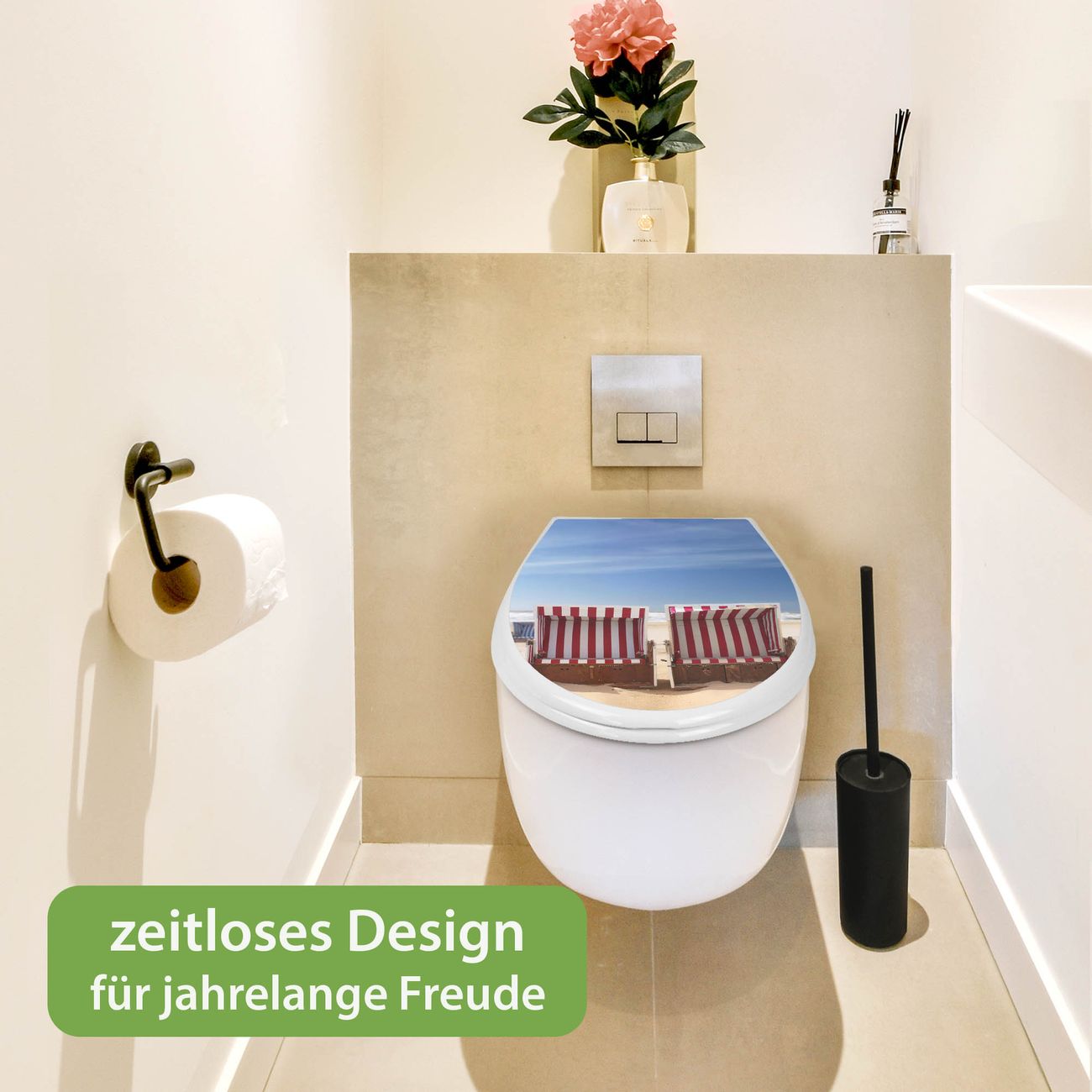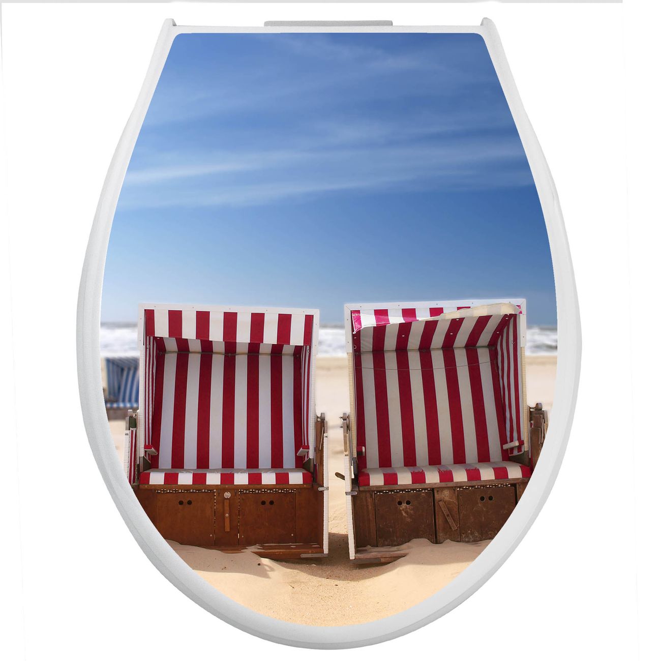 Toilettendeckel weiß mit Absenkautomatik Motiv Strandkörbe
