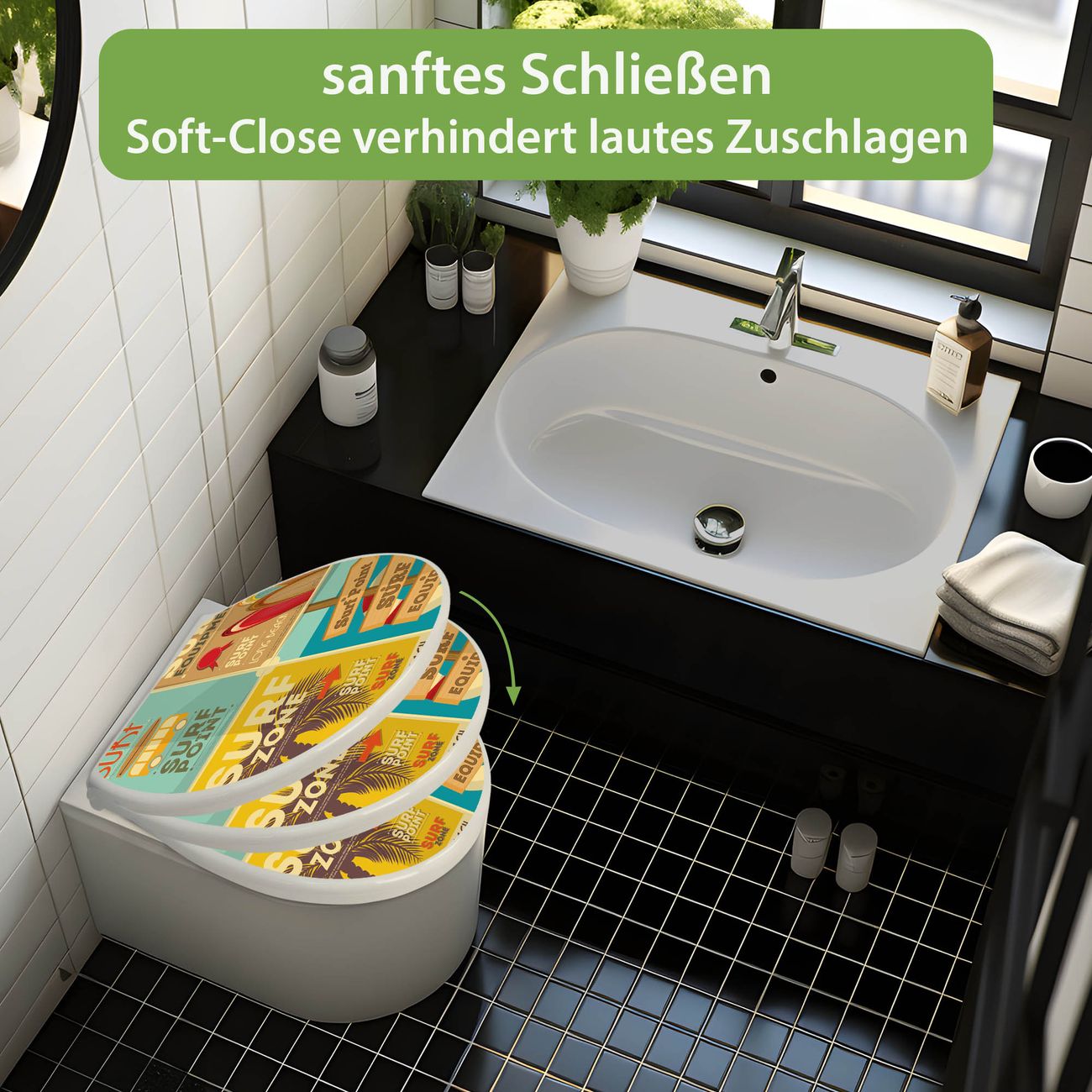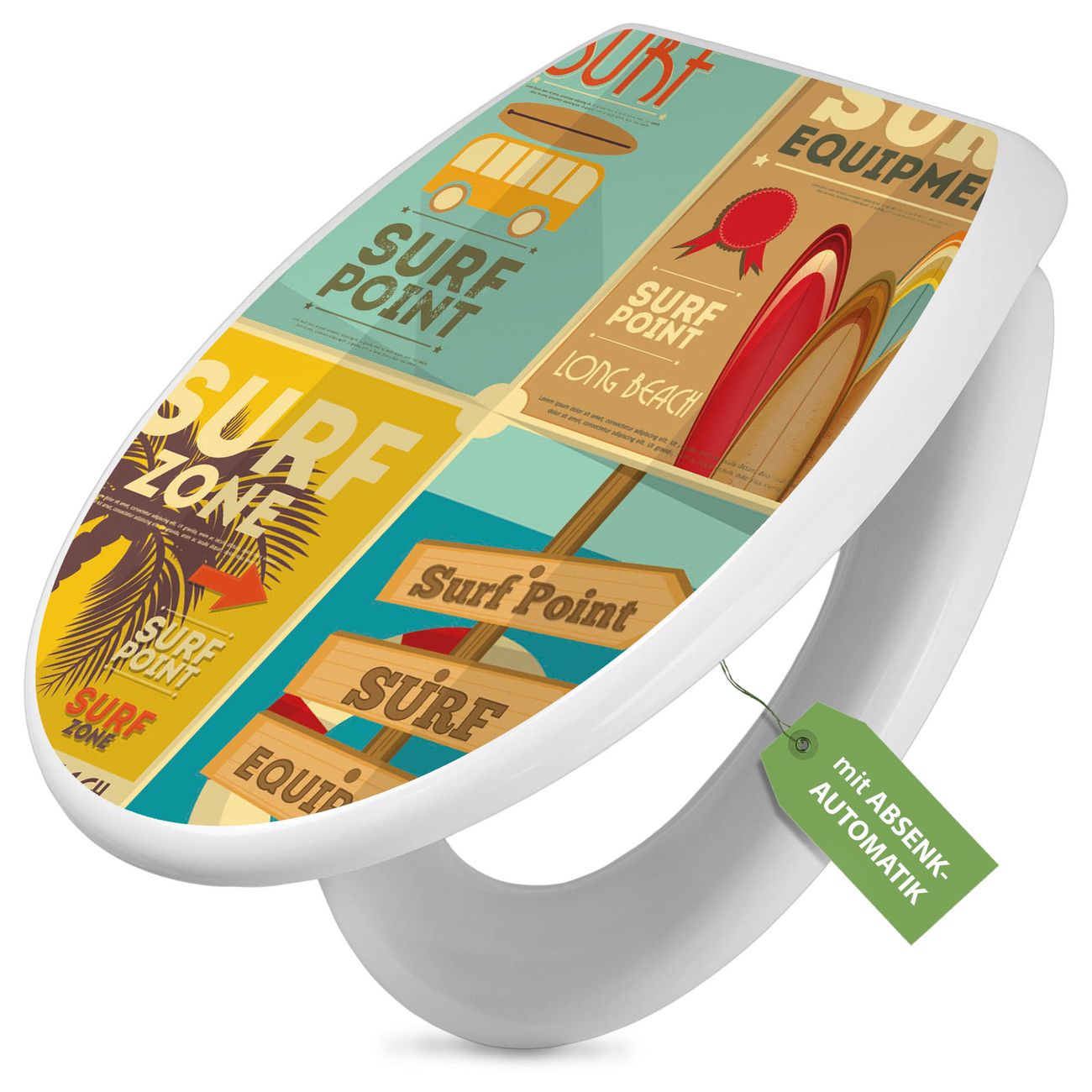 Toilettendeckel weiß mit Absenkautomatik Motiv Surf Point