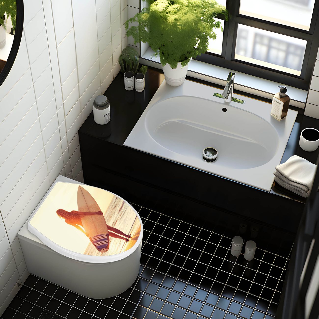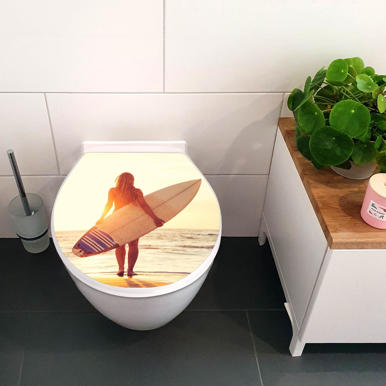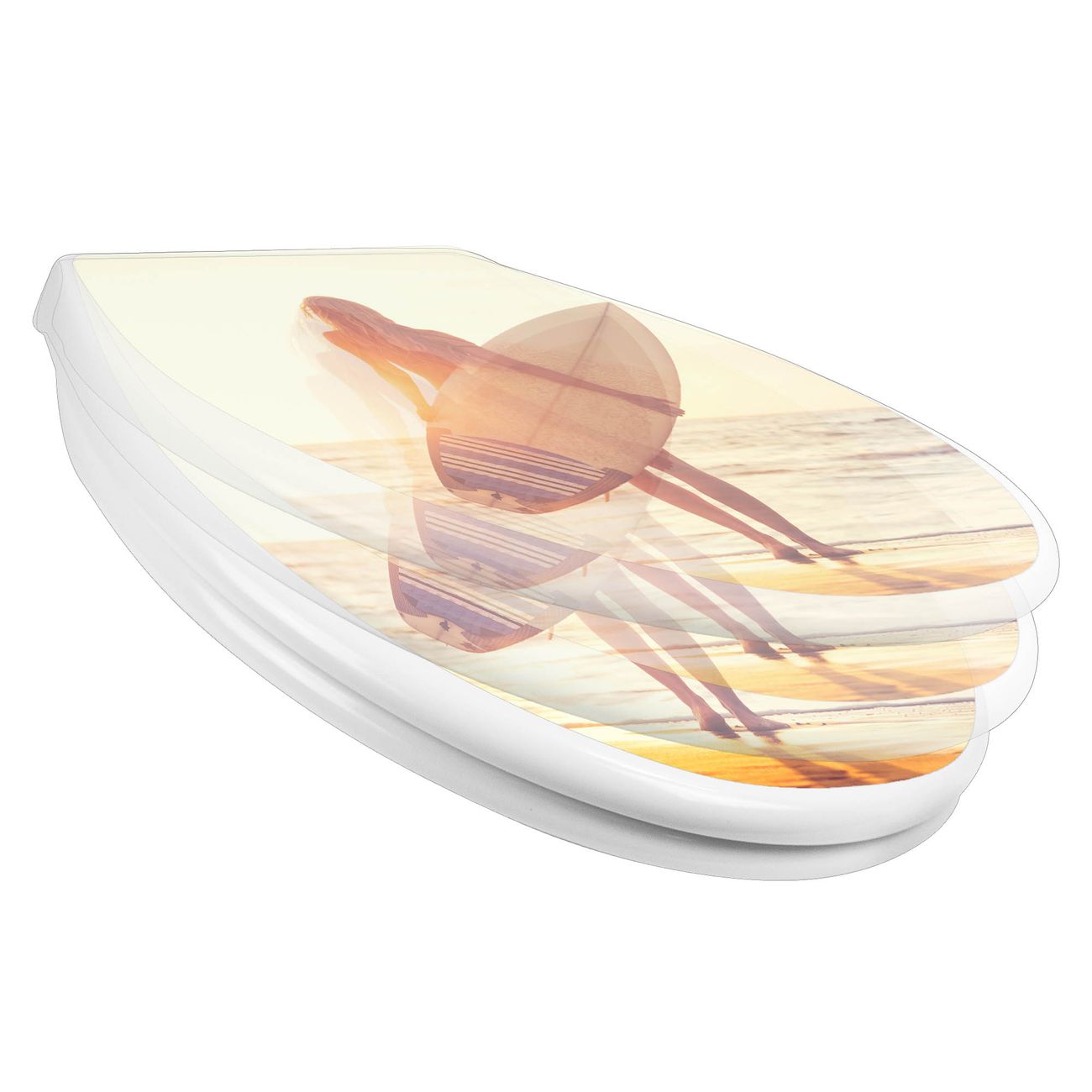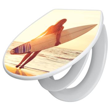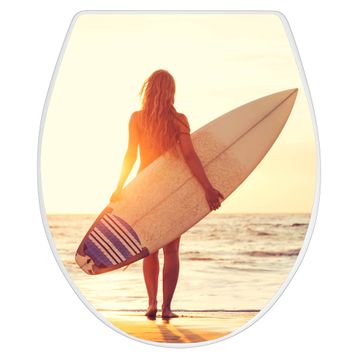 Toilettendeckel weiß mit Absenkautomatik Motiv Surfer Girl