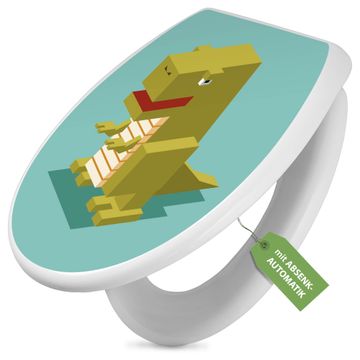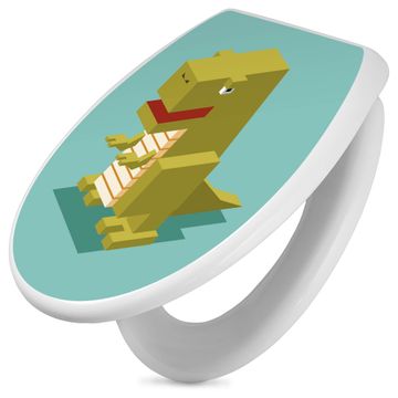 Toilettendeckel weiß mit Absenkautomatik Motiv T-Rex Block