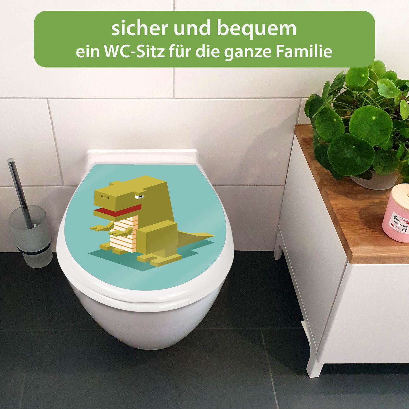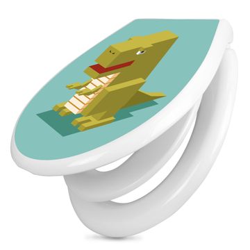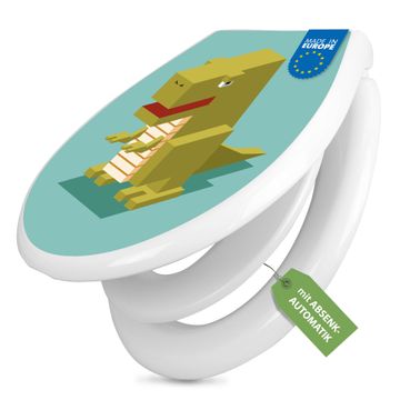 Toilettendeckel weiß mit Absenkautomatik Motiv T-Rex Block