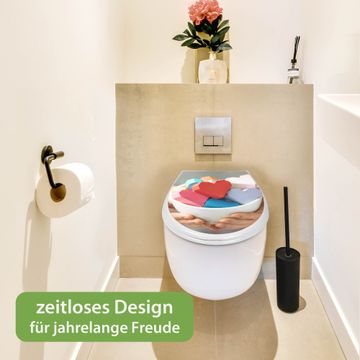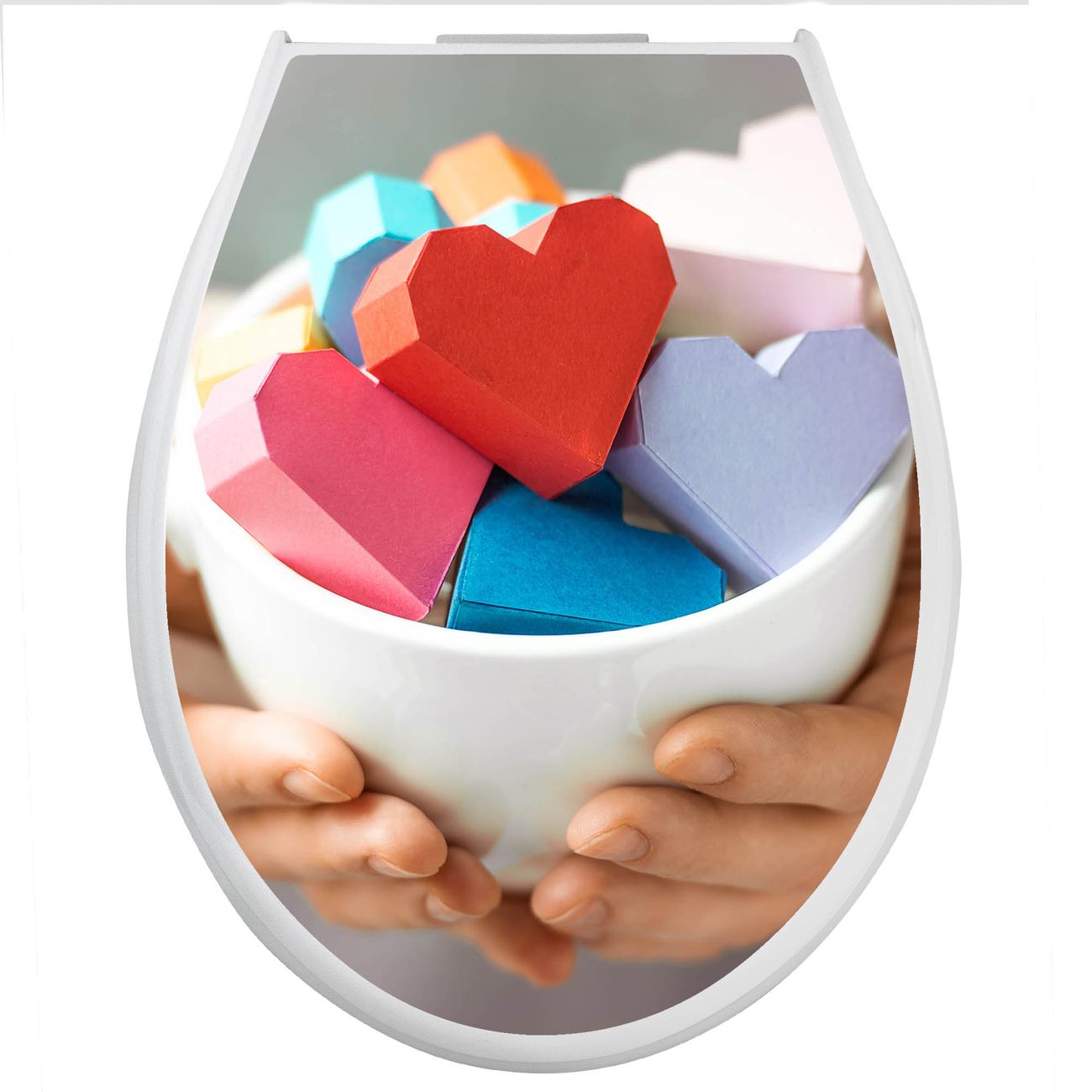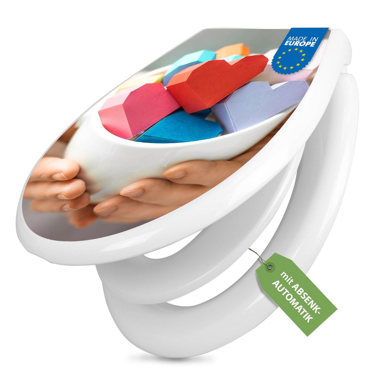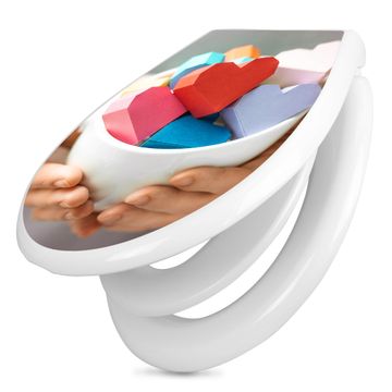 Toilettendeckel weiß mit Absenkautomatik Motiv Tasse voller Herzen