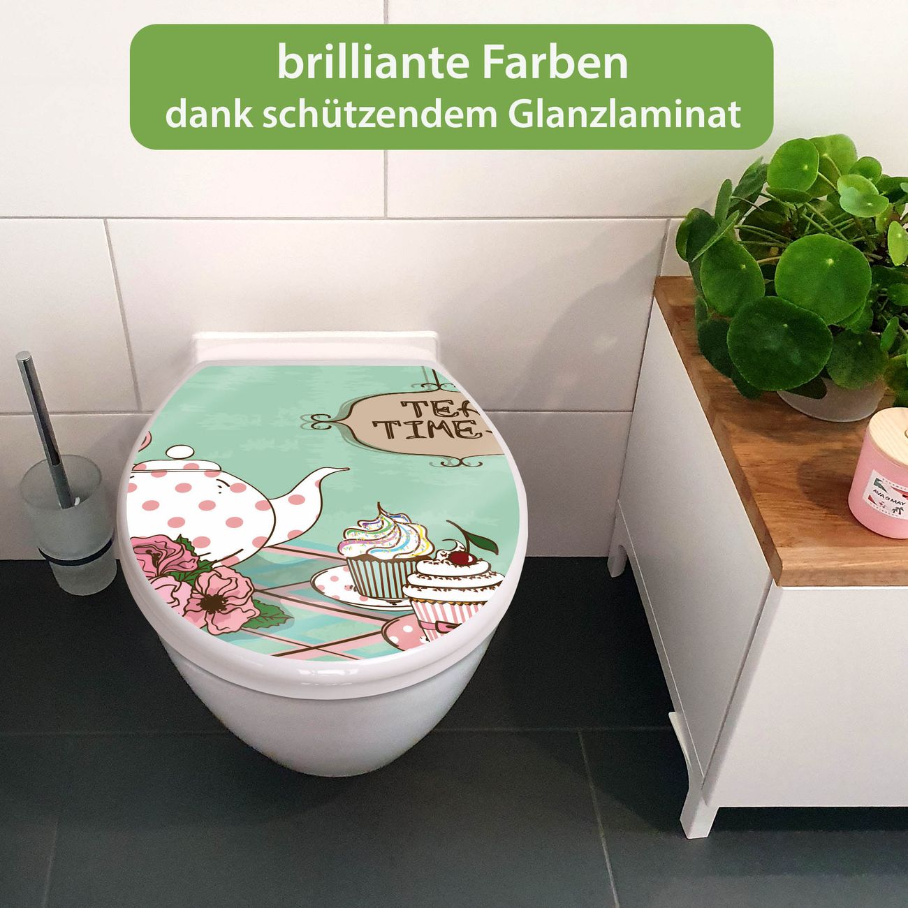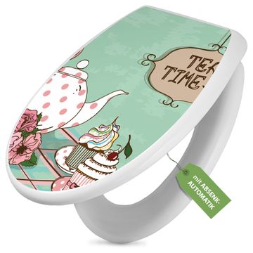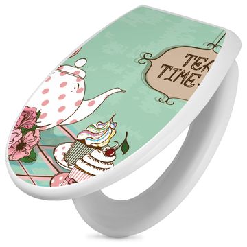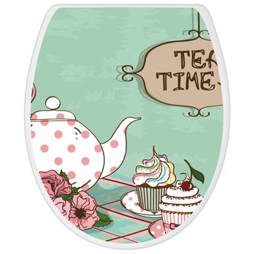Toilettendeckel weiß mit Absenkautomatik Motiv Tea Time