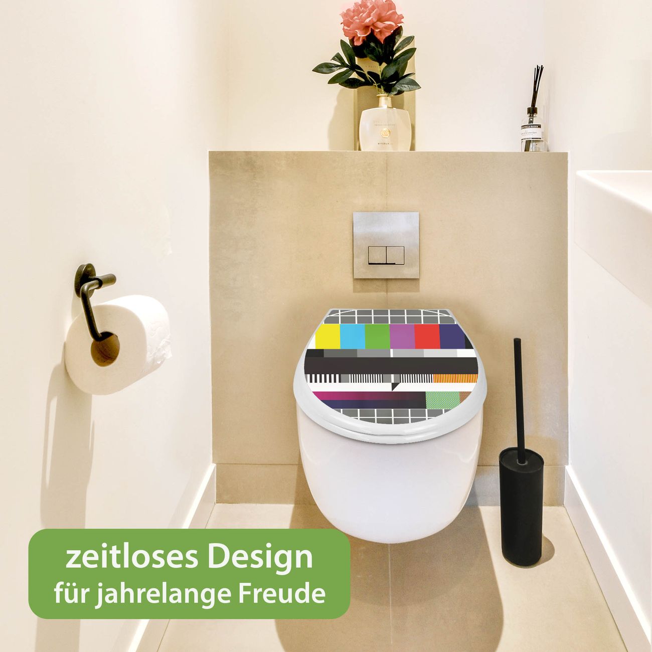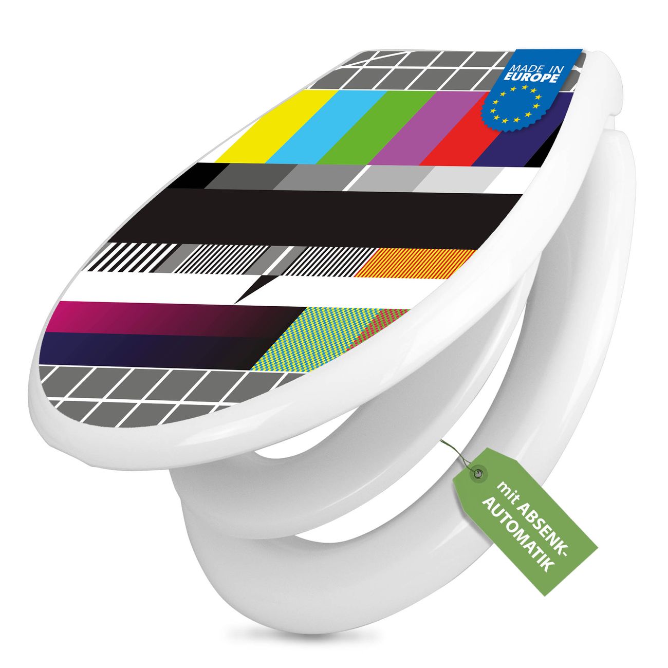 Toilettendeckel weiß mit Absenkautomatik Motiv Testbild