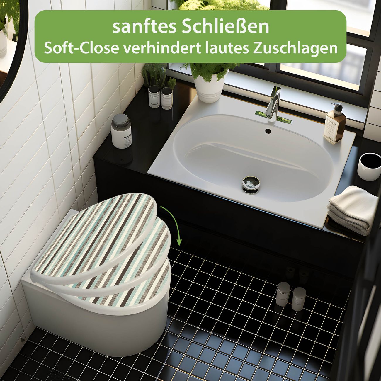 Toilettendeckel weiß mit Absenkautomatik Motiv Textile Streifen