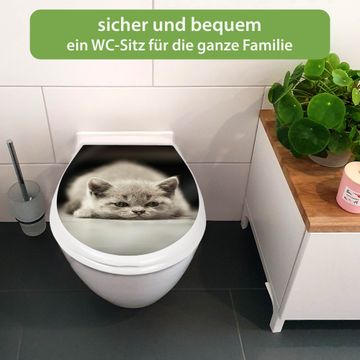 FUNKTION:Mit dem banjado Familien WC Sitz mit Absenkautomatik und dem Motiv Motiv Theodor verbinden Sie Design mit Funktionalität. Sie erhalten den Toilettendeckel in bewährt guter Qualität mit Montagematerial passend auf alle Euro-WC-Becken. Die Gesamtgröße beträgt 37,1cm x 44,9cm x 5cm, die Grundfarbe ist weiß.</p> DESIGN:Der Klodeckel in weiß mit Motiv Motiv Theodor hat eine ansprechende Optik, eine besondere Form und ist sehr stabil. Das Motiv besteht aus einer farbbrillianten Motivfolie, die durch ein Schutzlaminat zusätzlich vor Kratzern schützt. Der integrierte Kindersitz fügt sich harmonisch ein. DETAILS:Der Toilettensitz mit Soft Close besteht aus hochwertigem Polypropylen, ist geruchlos, ungiftig und kann mit handelsüblicher Seife gereinigt werden. Die Montage kann von von oben oder von unten erfolgen und ist kinderleicht. NUTZEN:Mit Hilfe der detaillierten Aufbauanleitung ermöglichen wir eine schnelle und unkomplizierte Montage. Die banjado Klobrille ist universell geeignet für alle Euro-WC-Schüsseln. Der Kindersitz kann unkompliziert entfernt werden. BANJADO:Ihr WC-Deckel wird in Sachsen in einer kleinen Manufaktur von Hand veredelt. Die Motivfolie ist lösungsmittelfrei und schutzlaminiert für einen langen Halt. Wir wünschen viel Freude bei der Auswahl eines schönen Motivs.