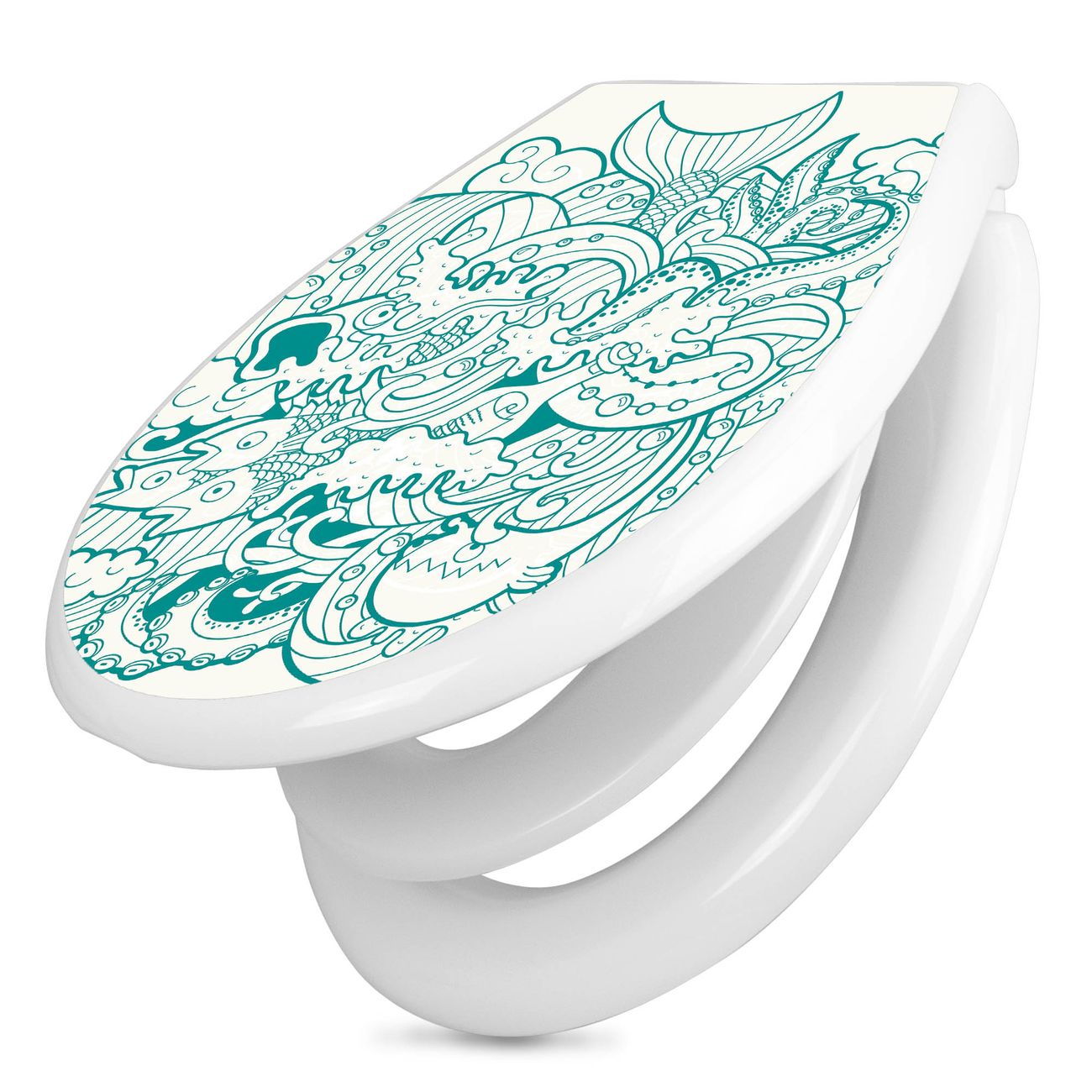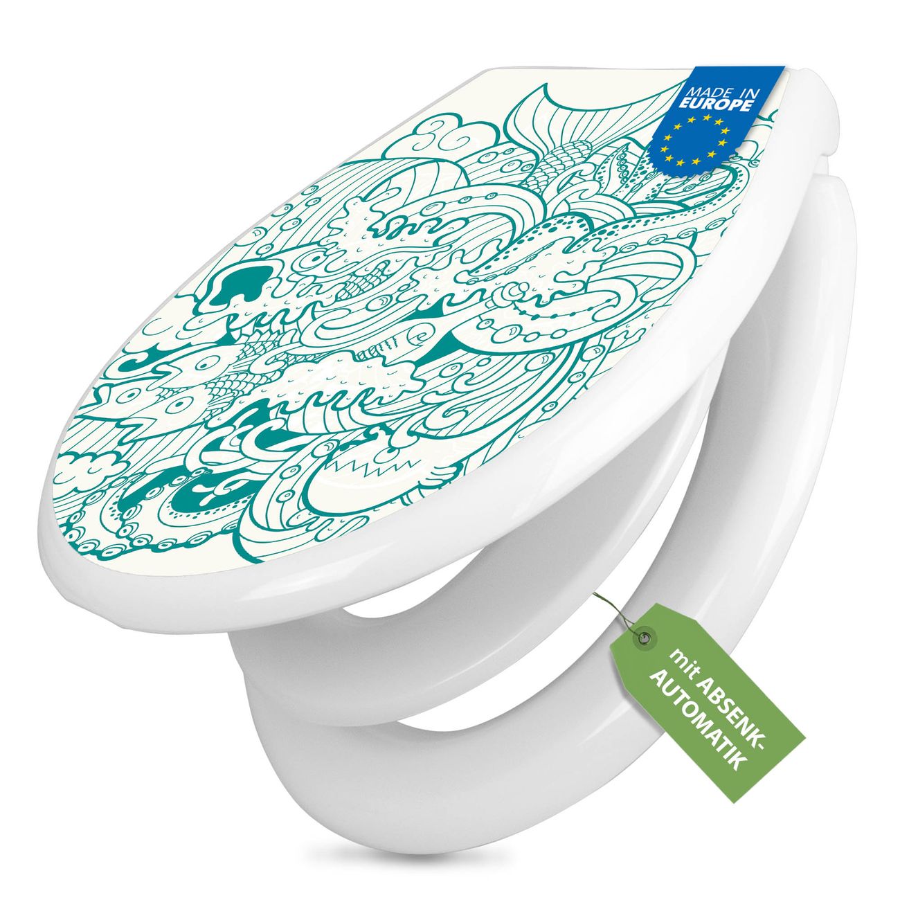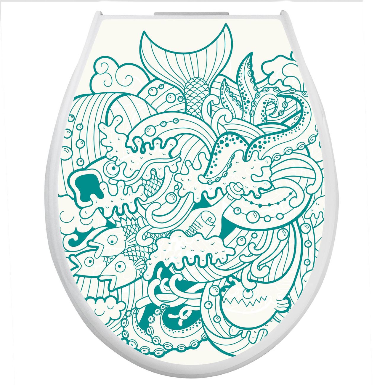 Toilettendeckel weiß mit Absenkautomatik Motiv Tiefsee