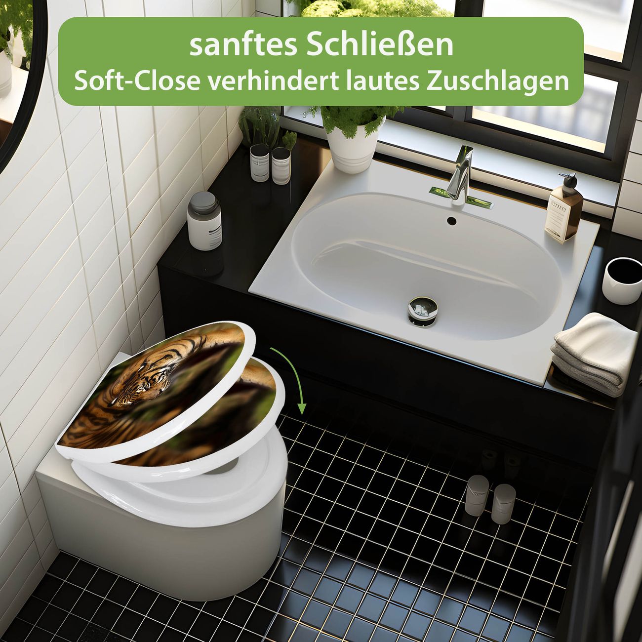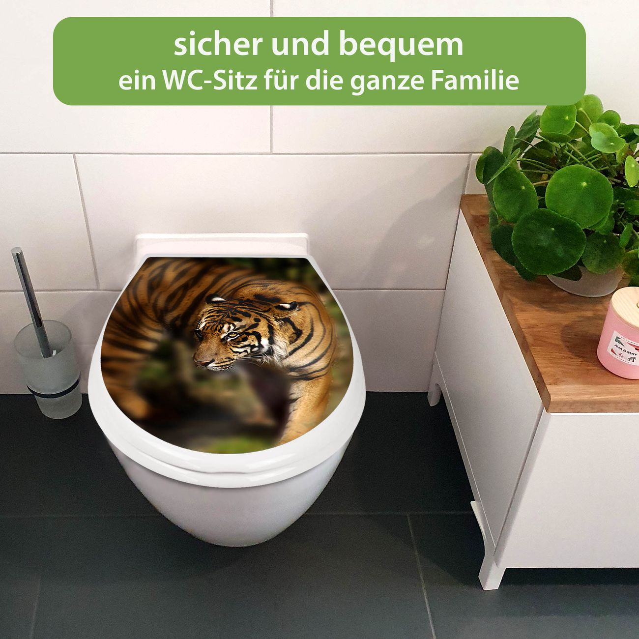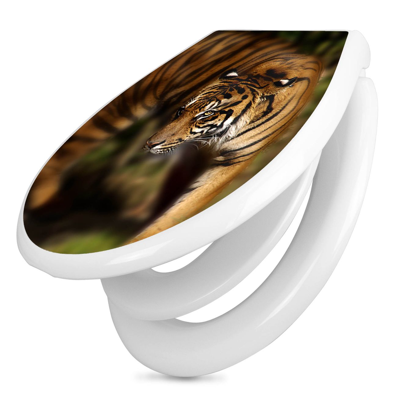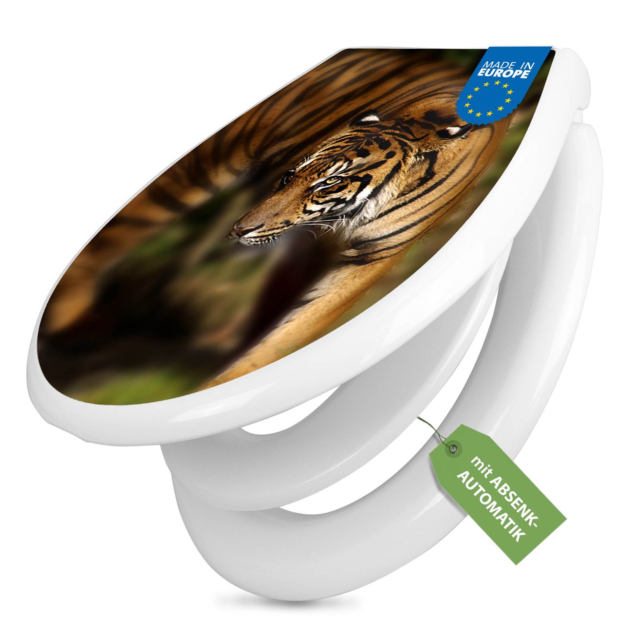 Toilettendeckel weiß mit Absenkautomatik Motiv Tiger