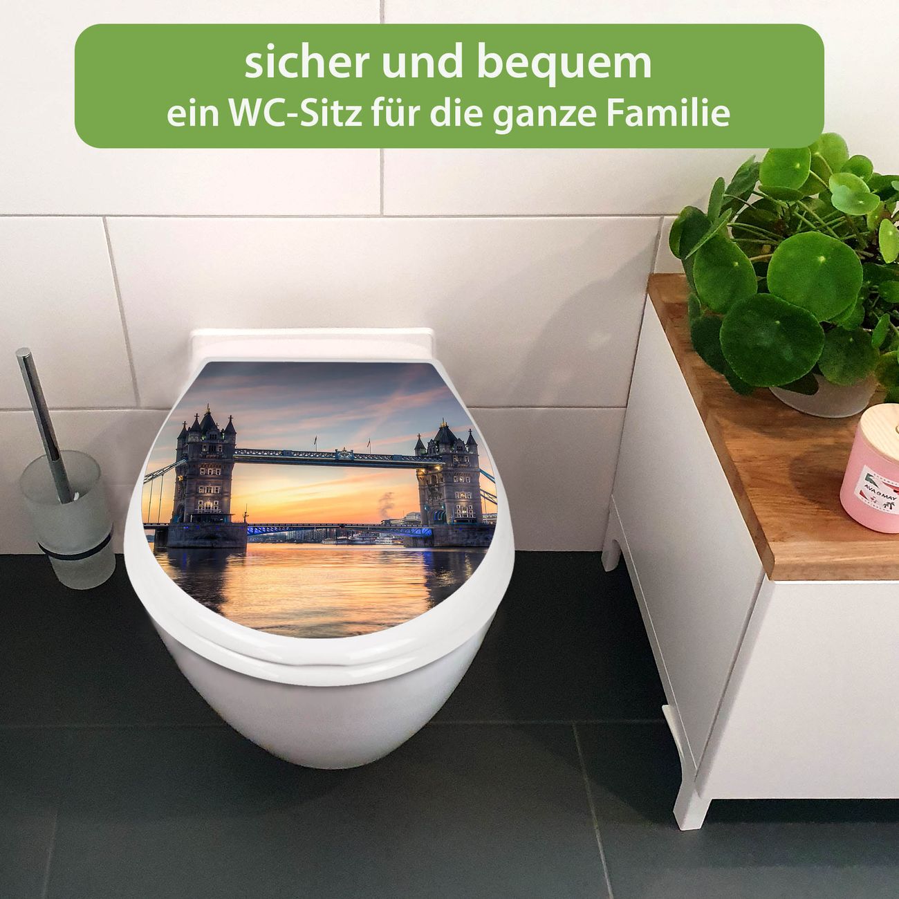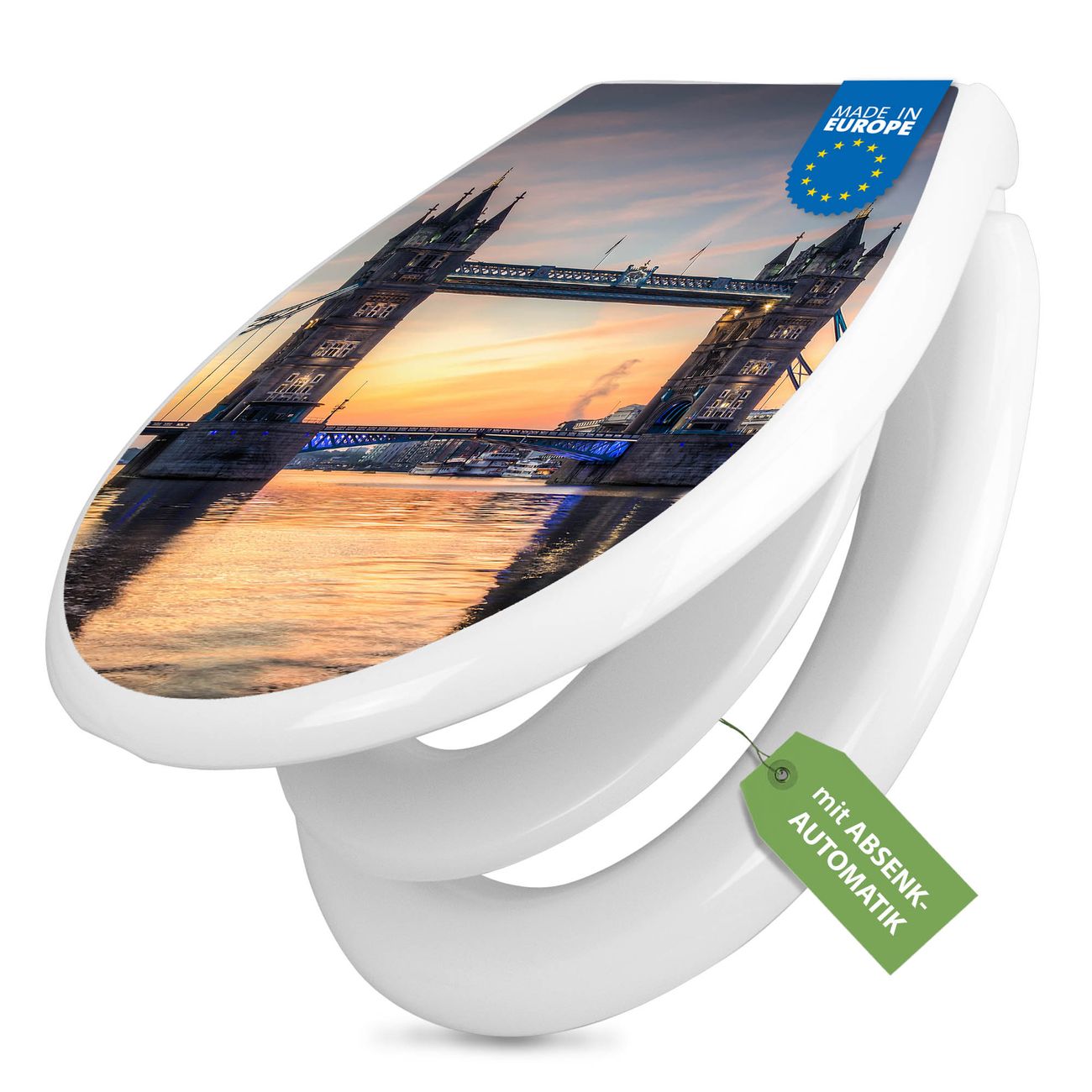 Toilettendeckel weiß mit Absenkautomatik Motiv Tower Bridge