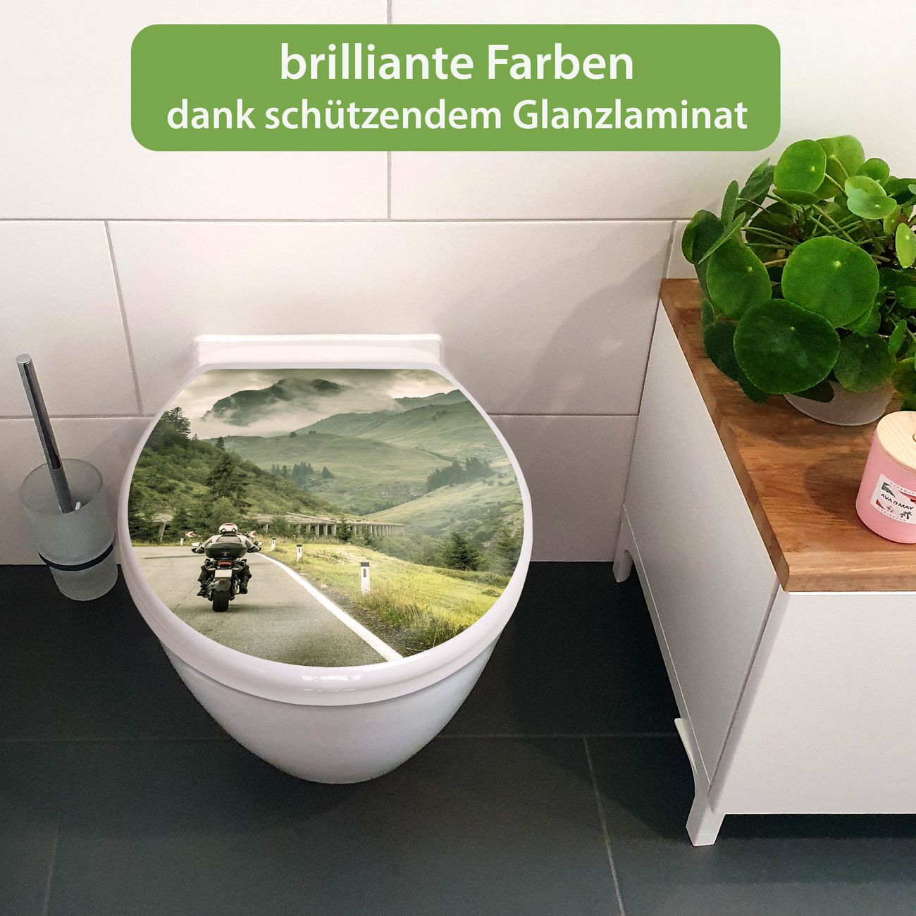 Toilettendeckel weiß mit Absenkautomatik Motiv Transalp
