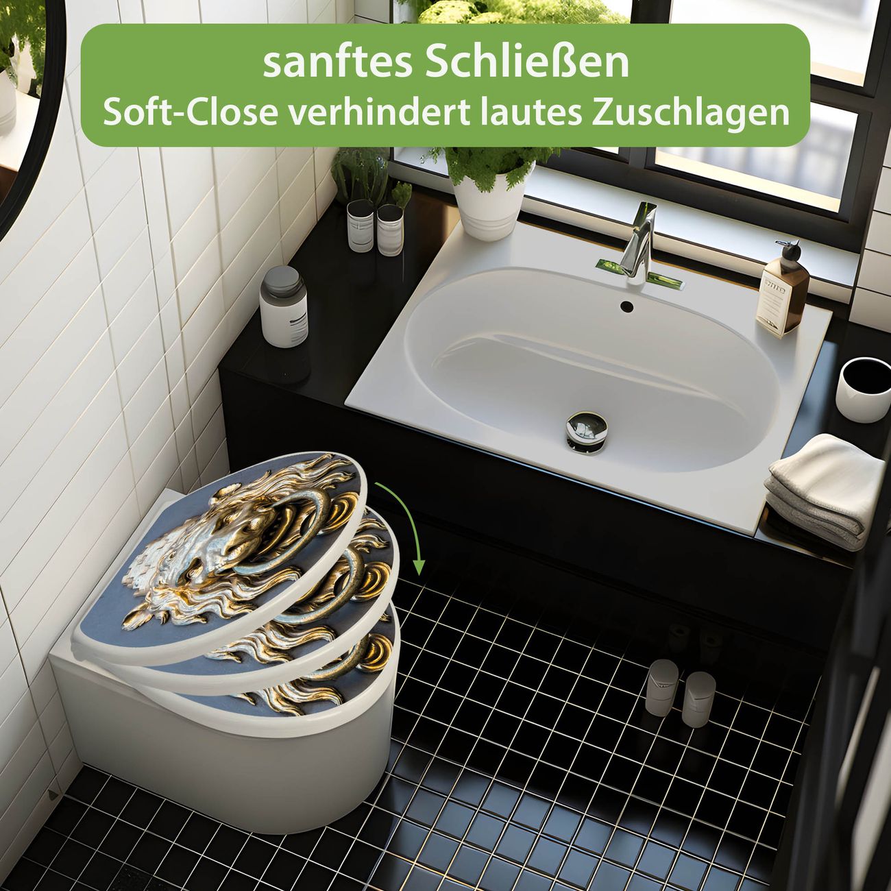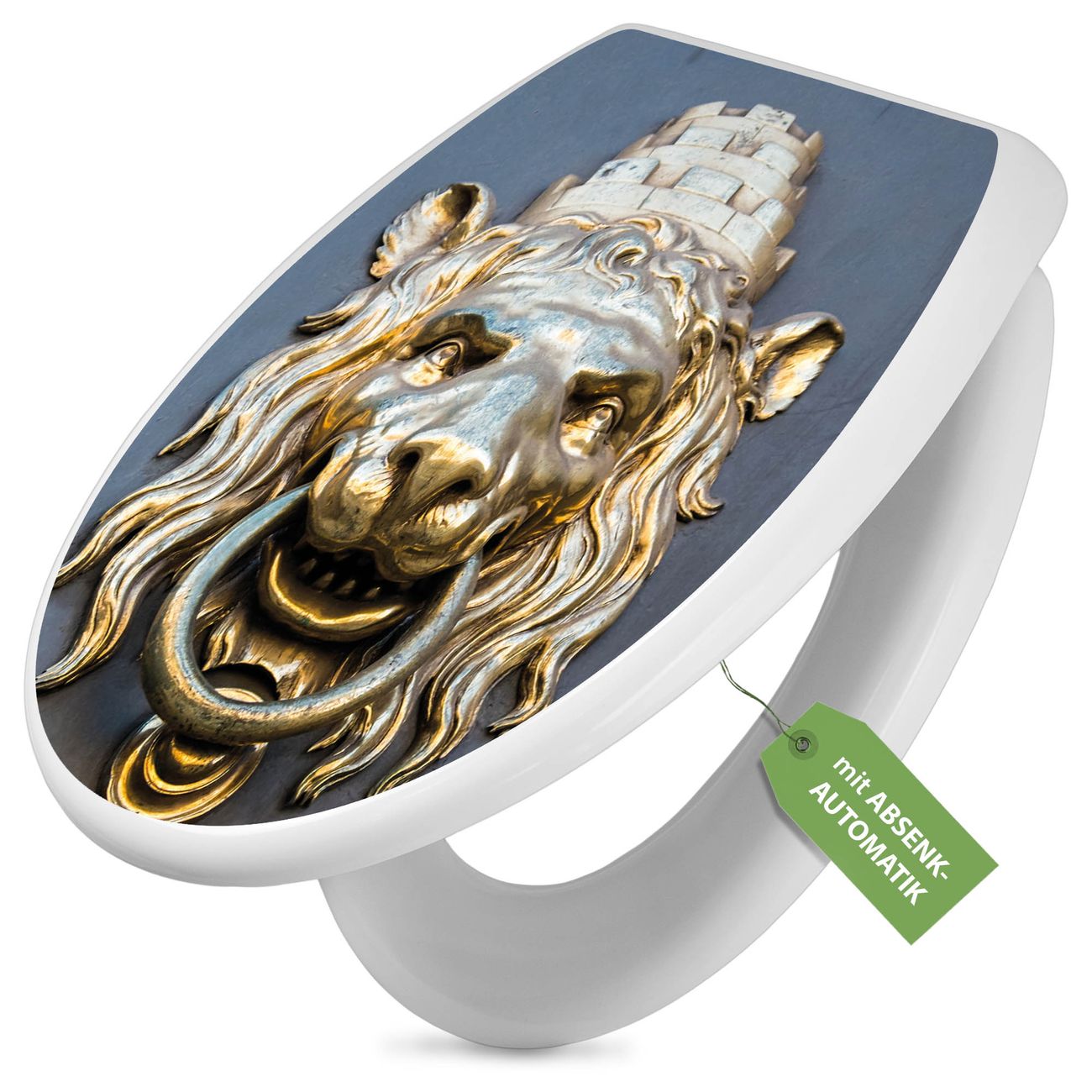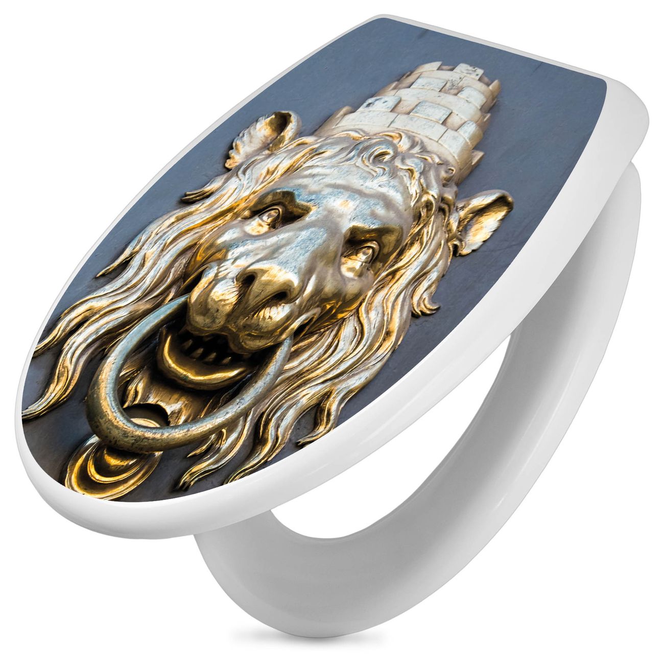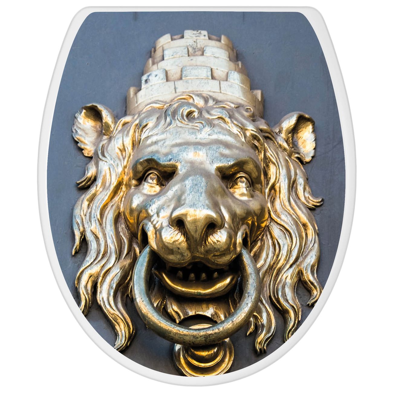Toilettendeckel weiß mit Absenkautomatik Motiv Türklopfer Löwe