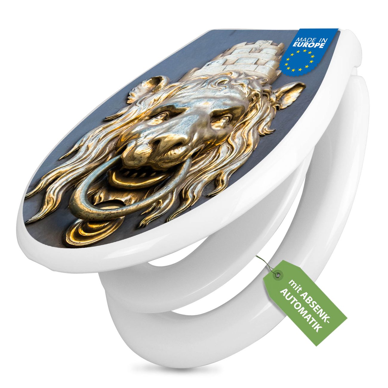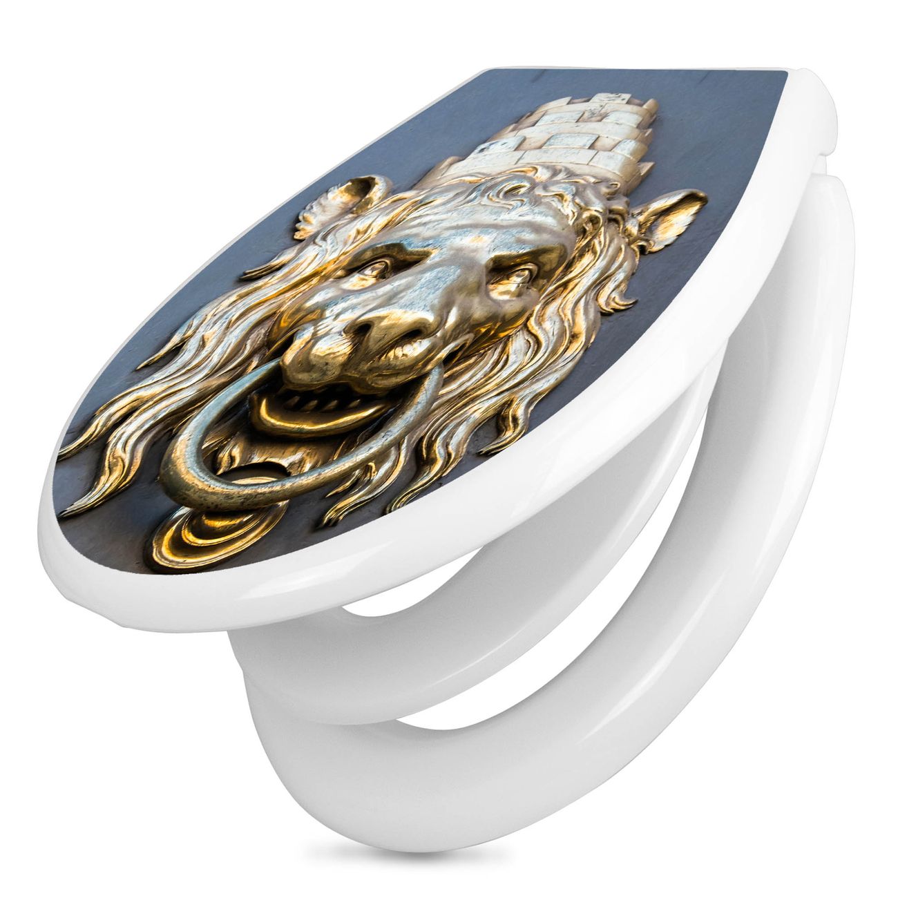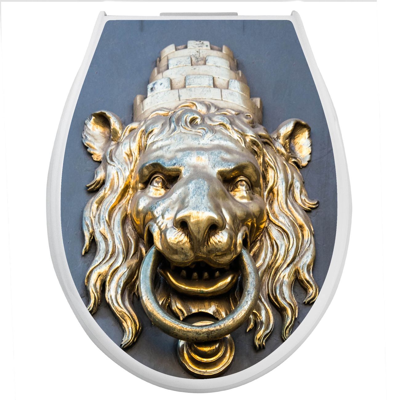 Toilettendeckel weiß mit Absenkautomatik Motiv Türklopfer Löwe