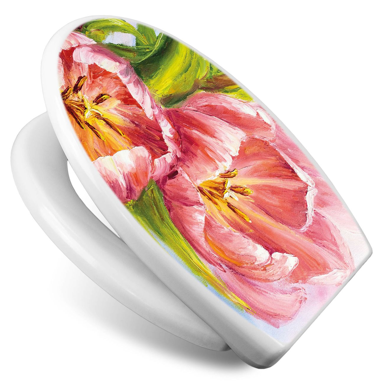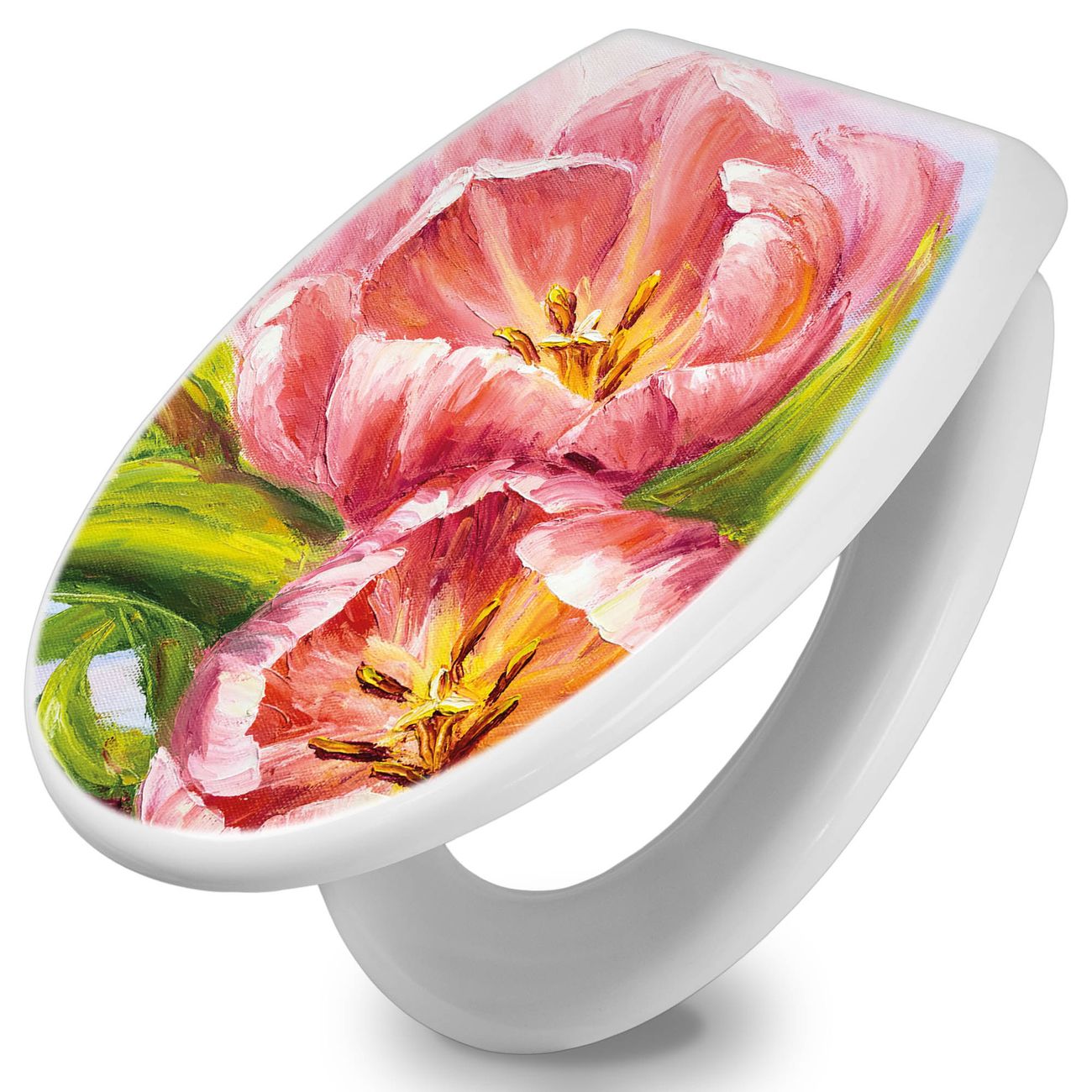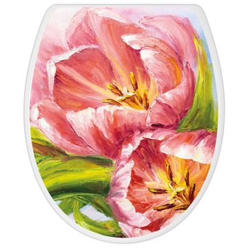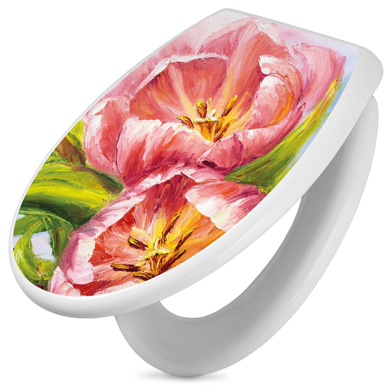 Toilettendeckel weiß mit Absenkautomatik Motiv Tulpen Detail