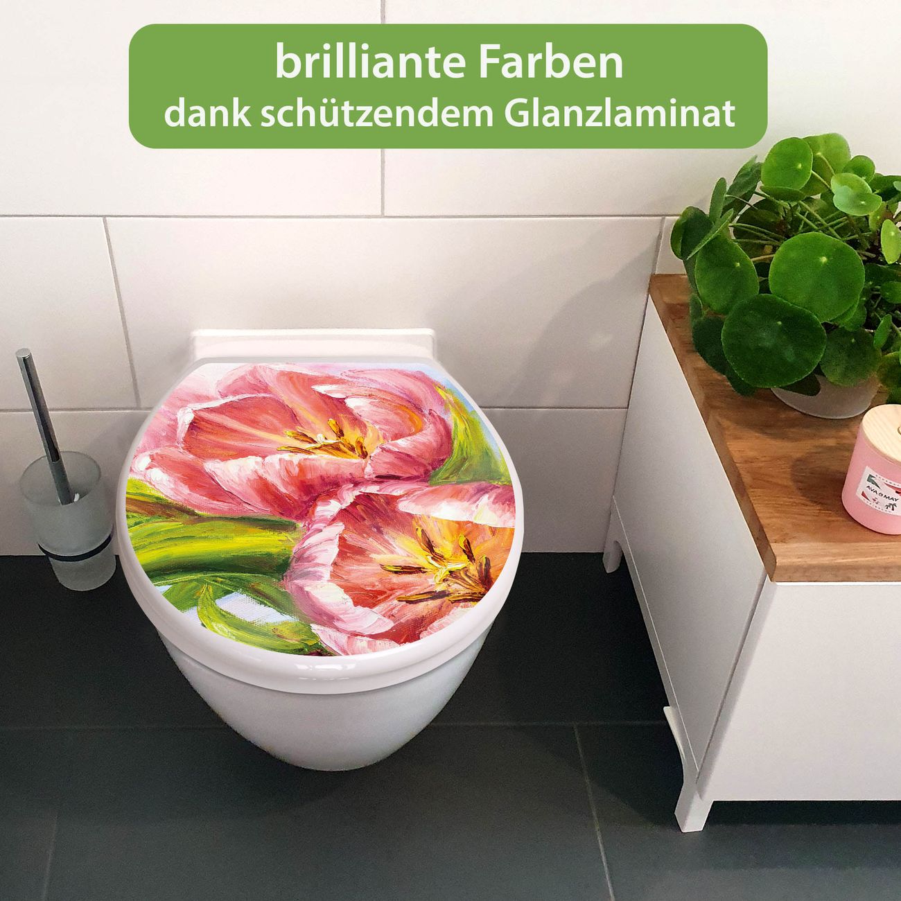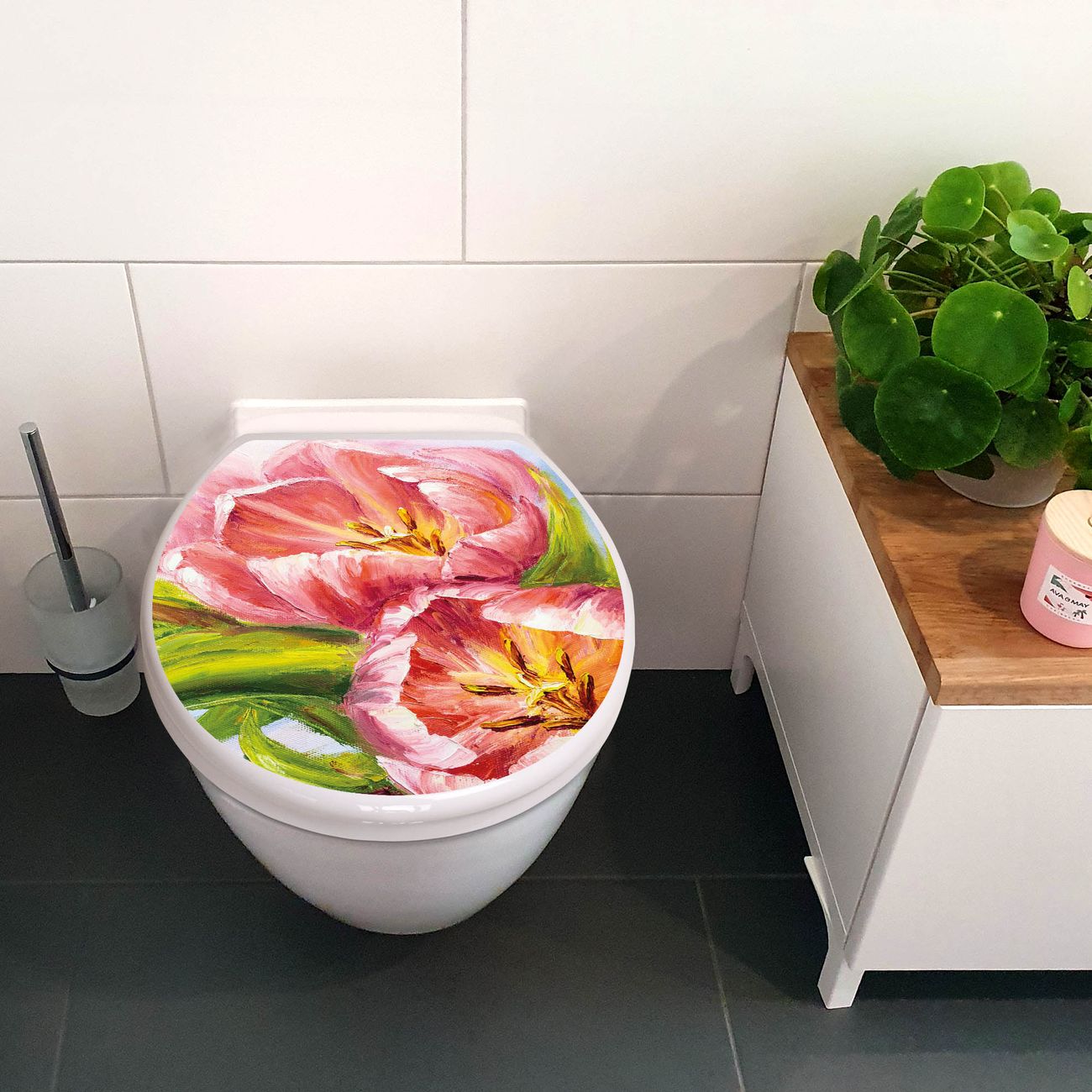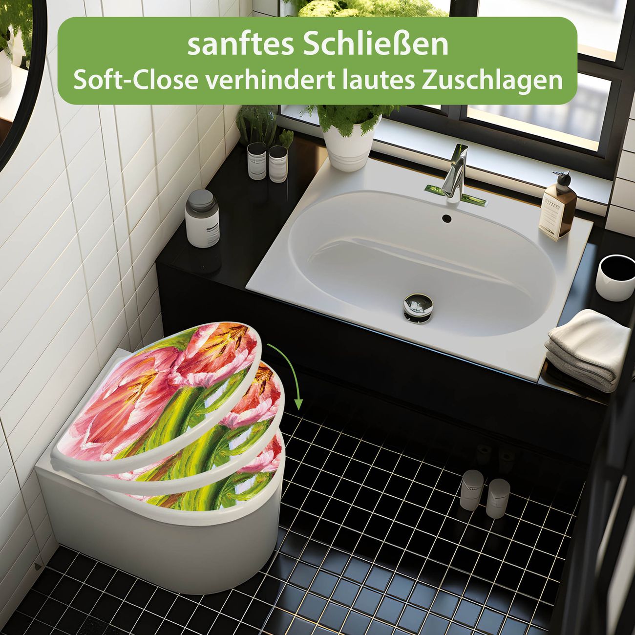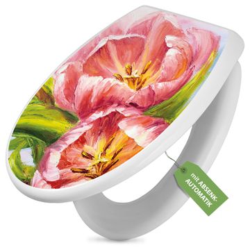 Toilettendeckel weiß mit Absenkautomatik Motiv Tulpen Detail