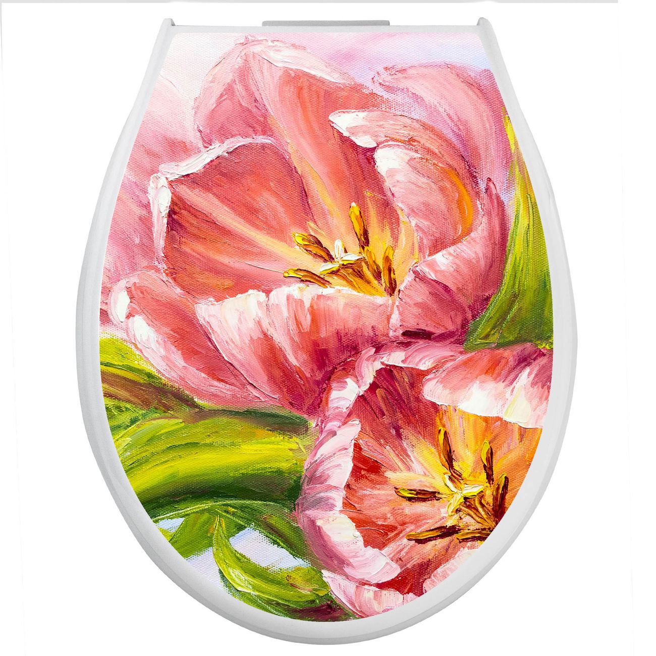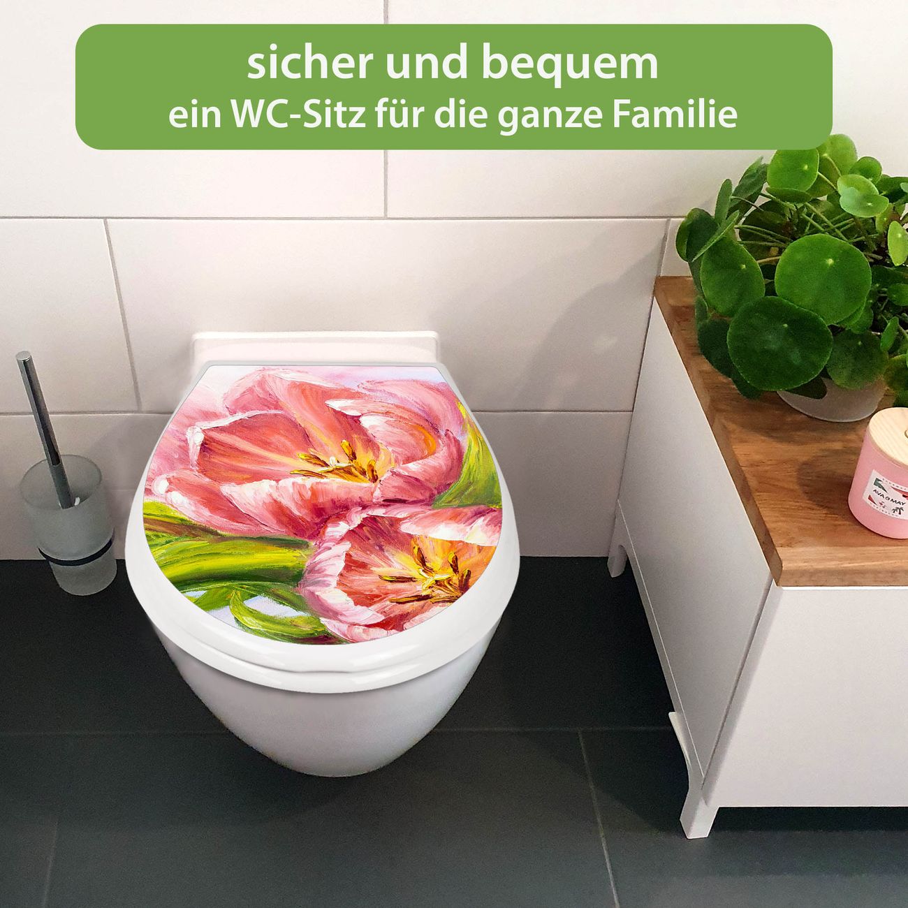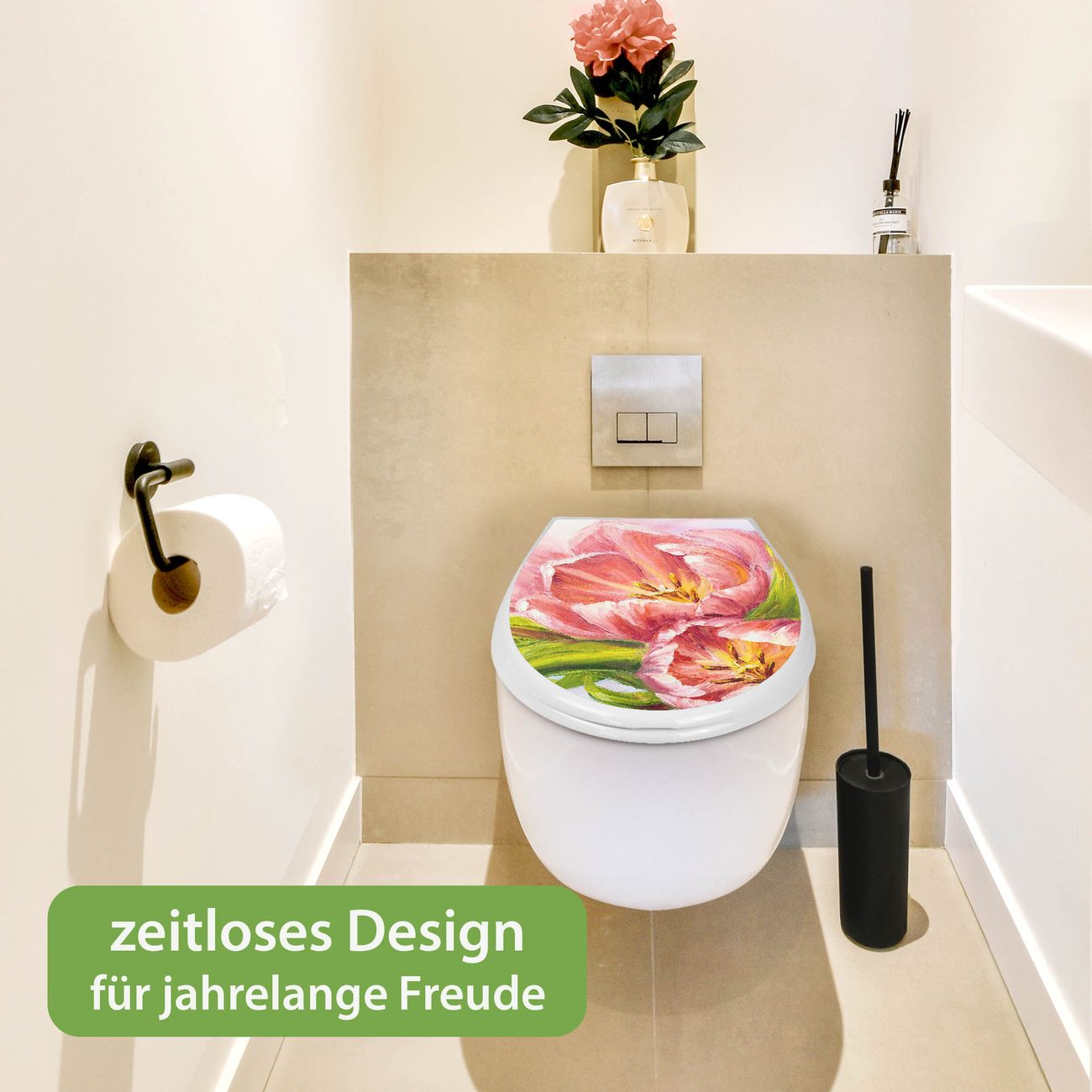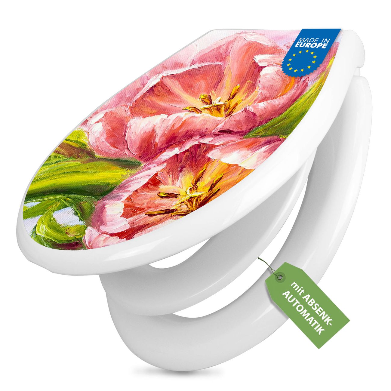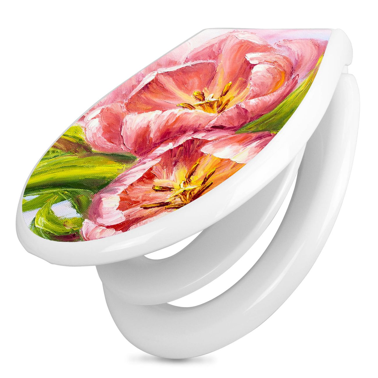Toilettendeckel weiß mit Absenkautomatik Motiv Tulpen Detail
