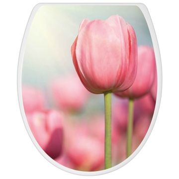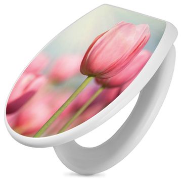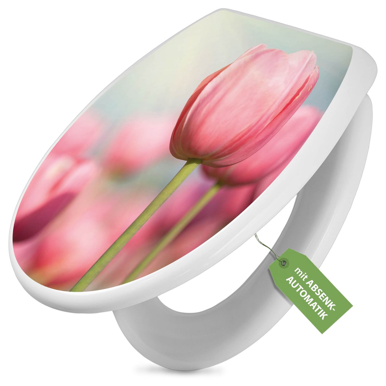 Toilettendeckel weiß mit Absenkautomatik Motiv Tulpen