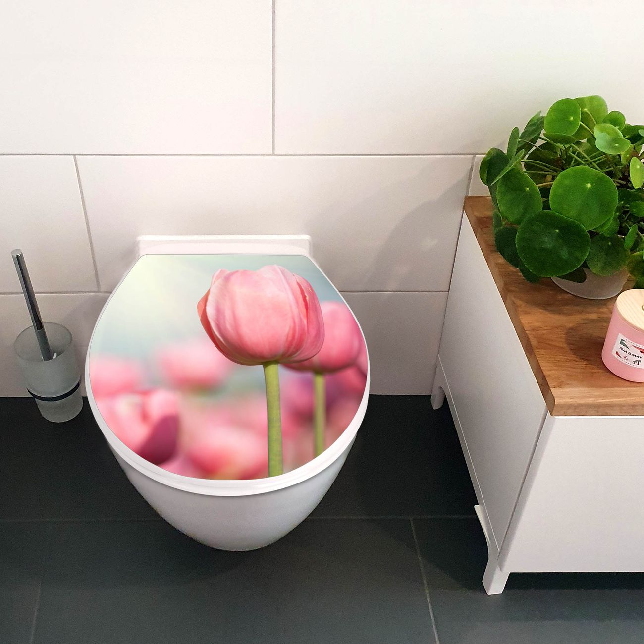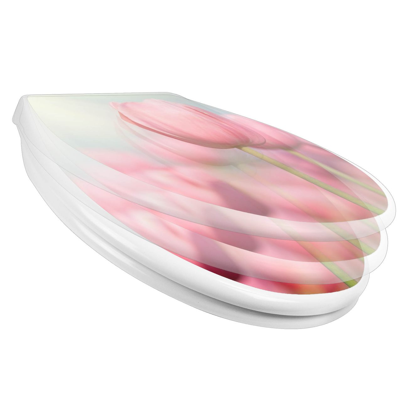Toilettendeckel weiß mit Absenkautomatik Motiv Tulpen