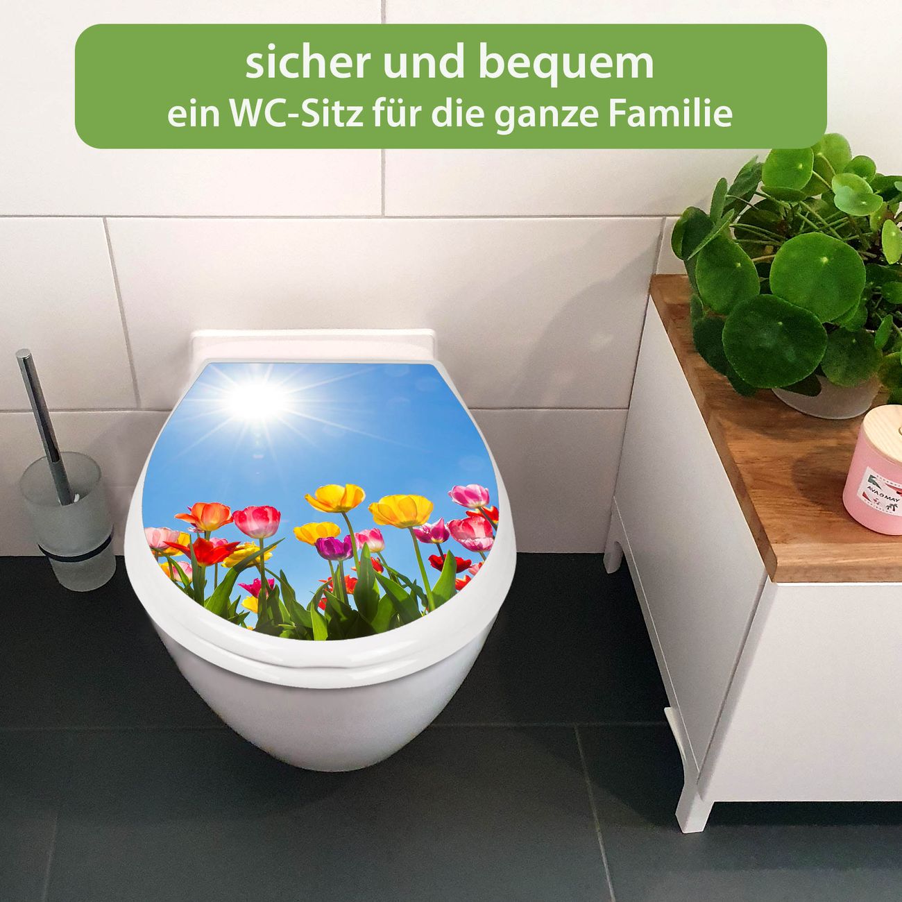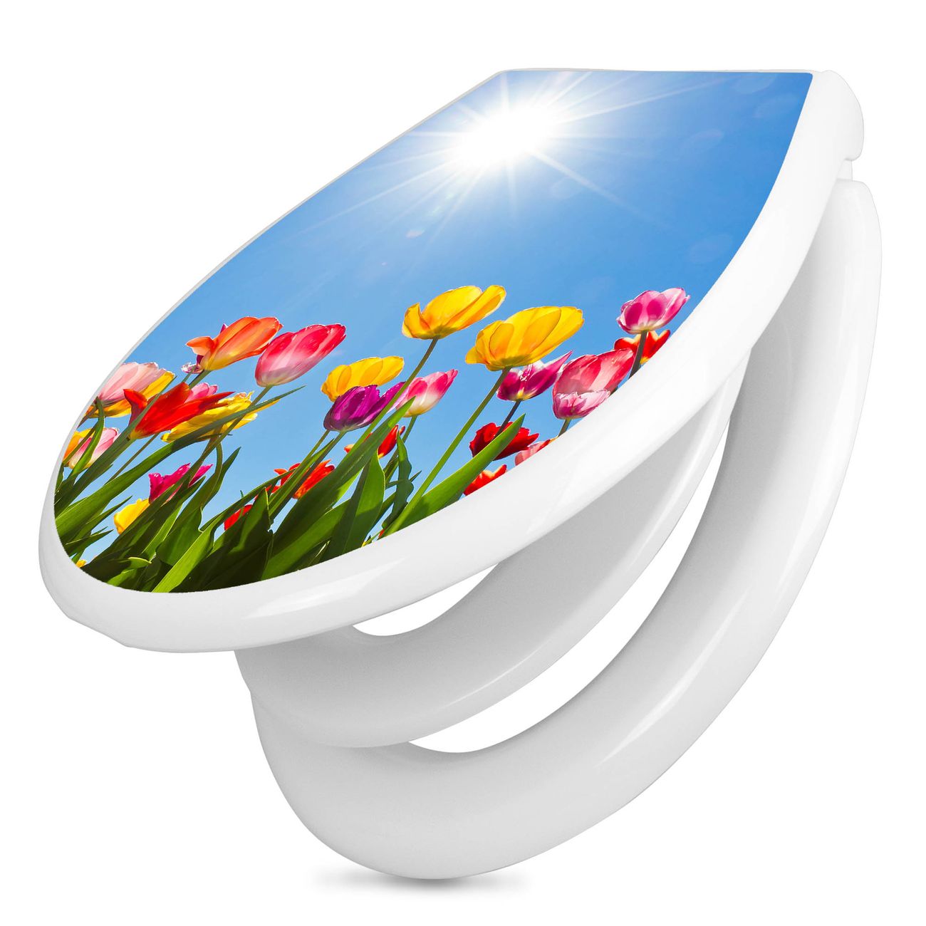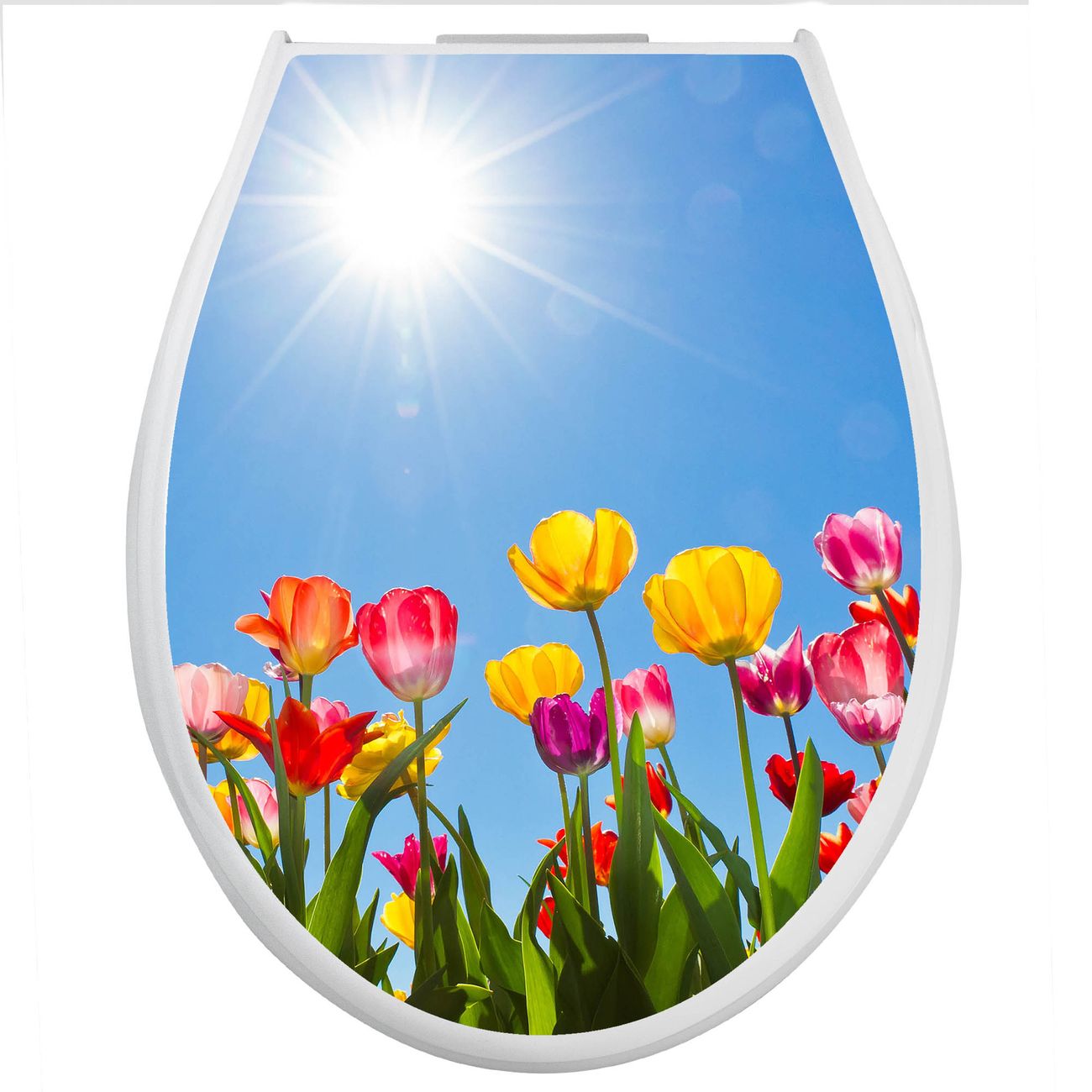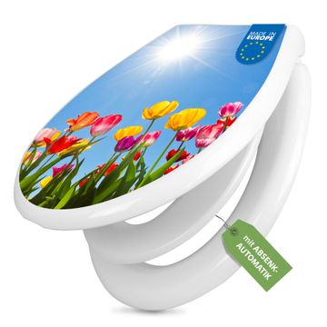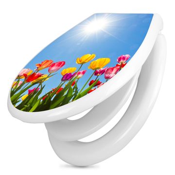 Toilettendeckel weiß mit Absenkautomatik Motiv Tulpenmeer