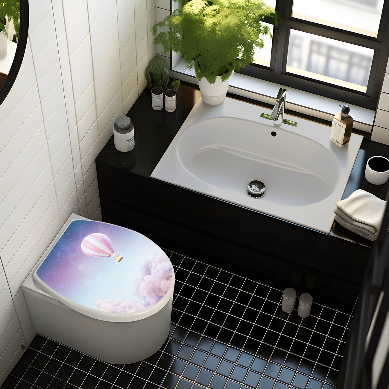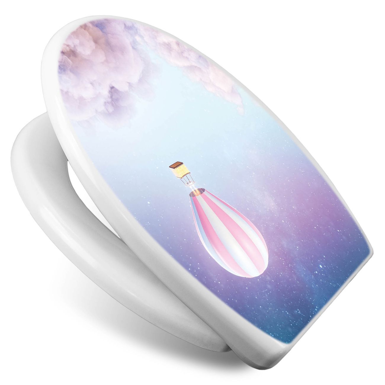 Toilettendeckel weiß mit Absenkautomatik Motiv Über den Wolken