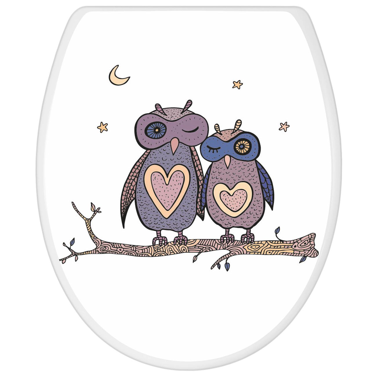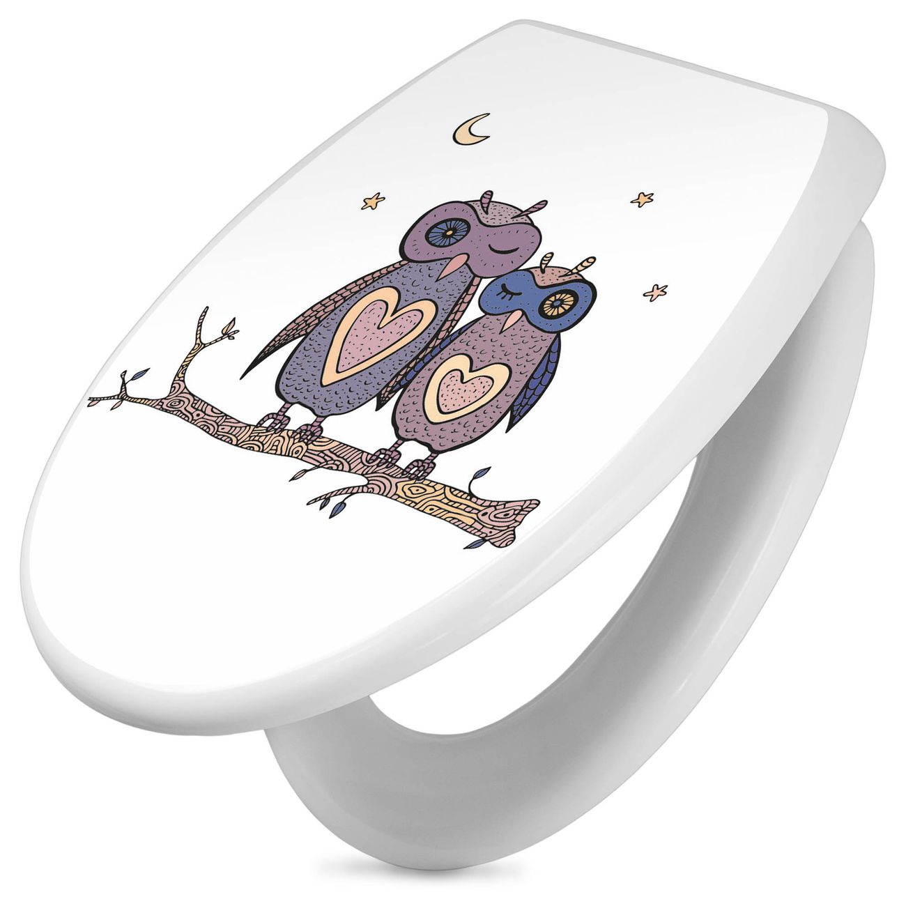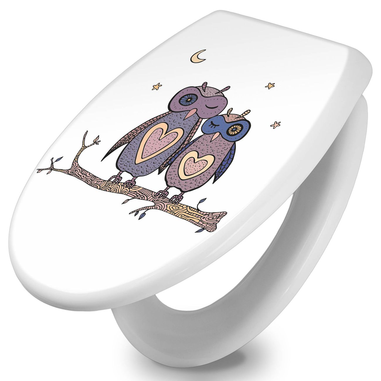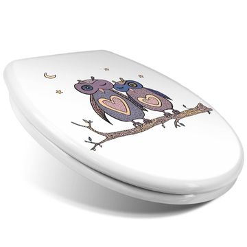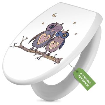 Toilettendeckel weiß mit Absenkautomatik Motiv Verliebte Eulen