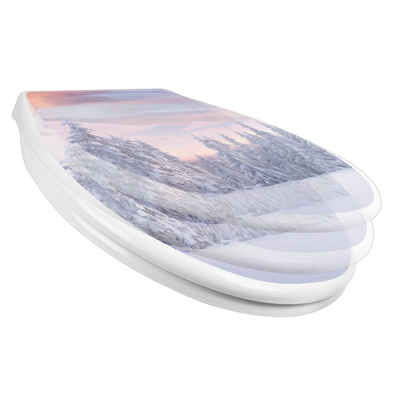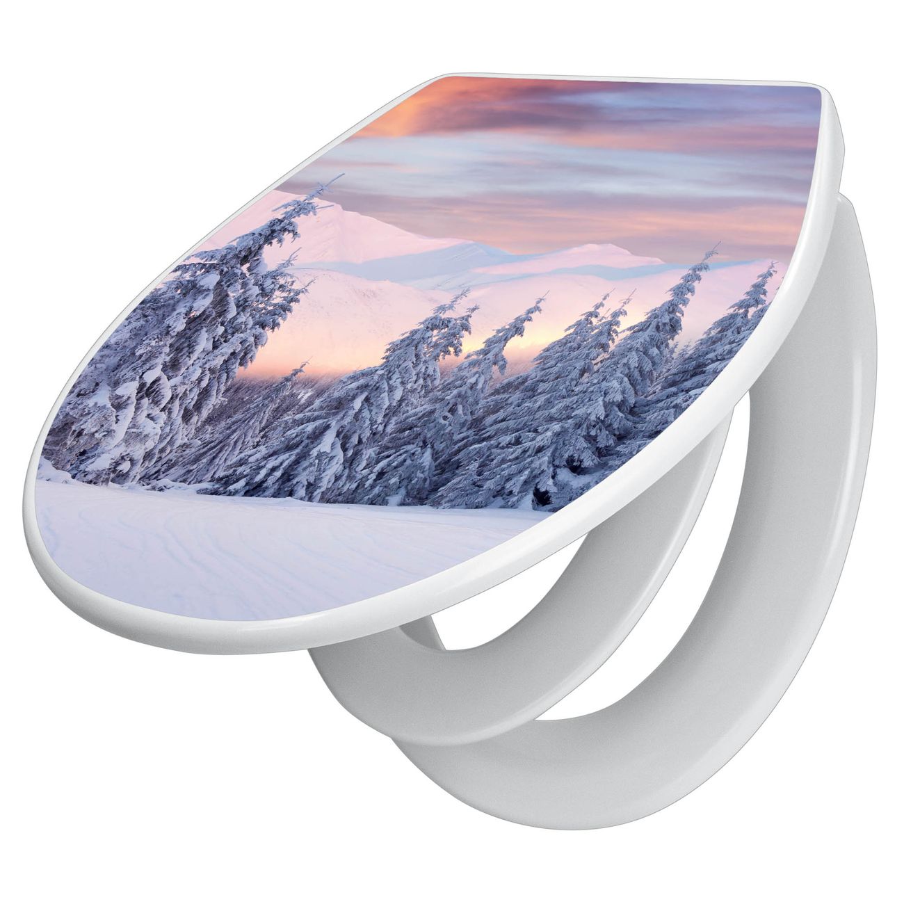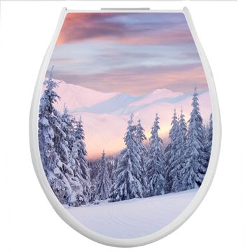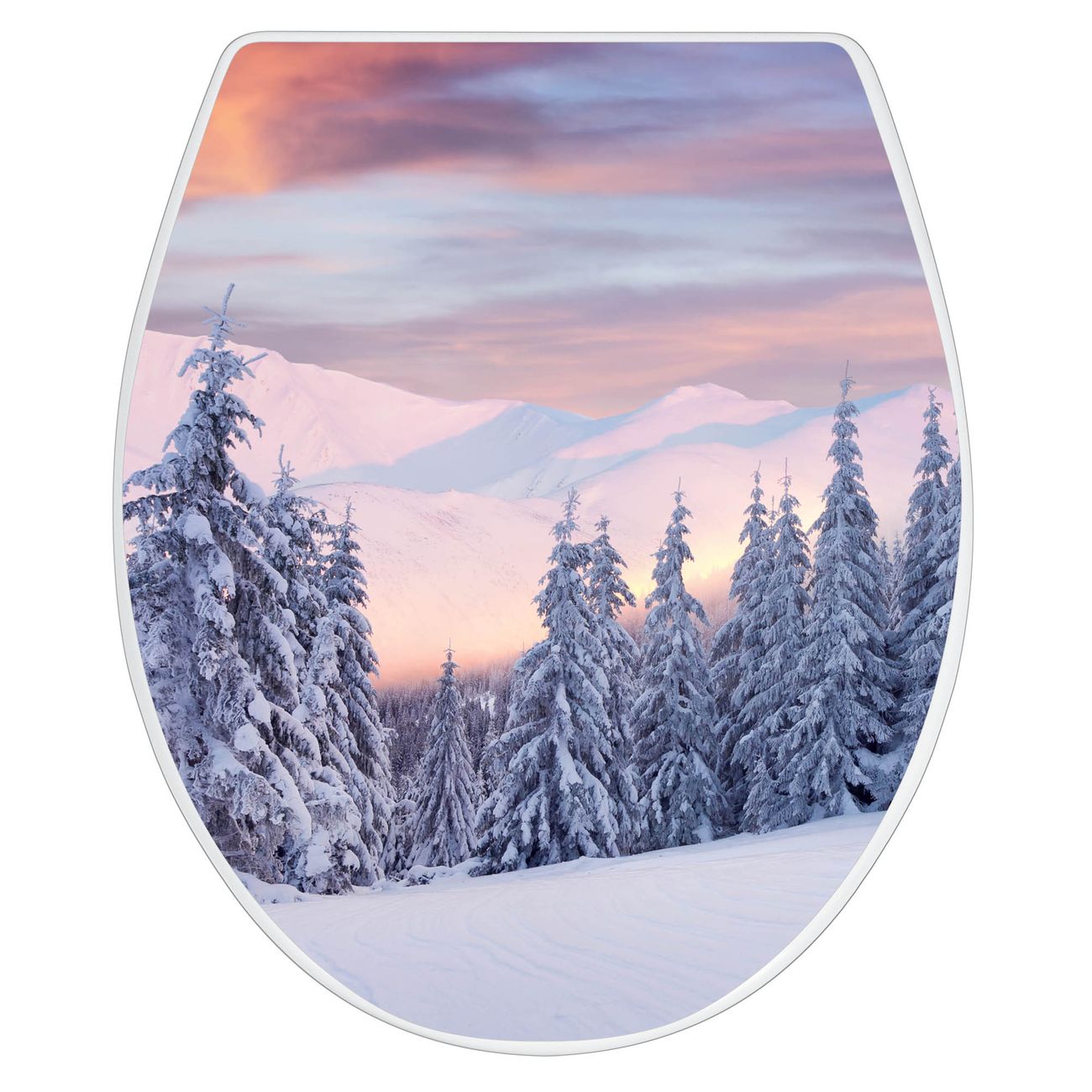 Toilettendeckel weiß mit Absenkautomatik Motiv Verschneite Berge