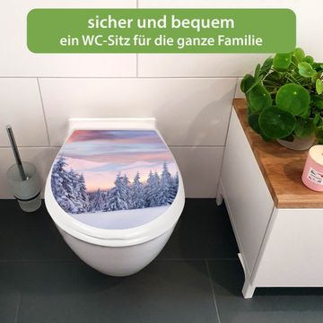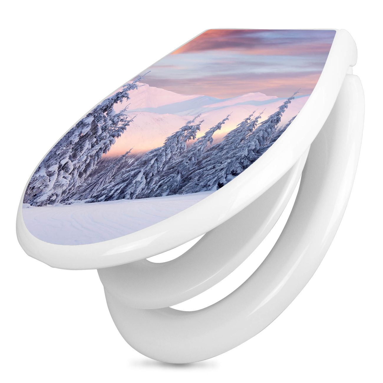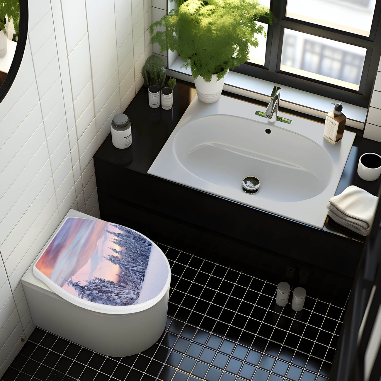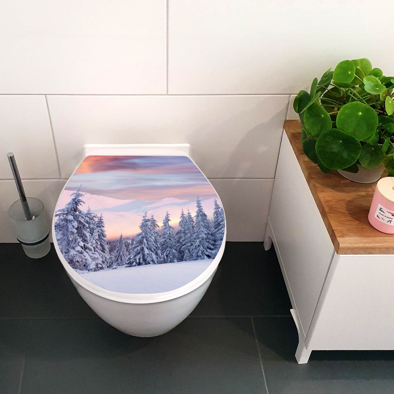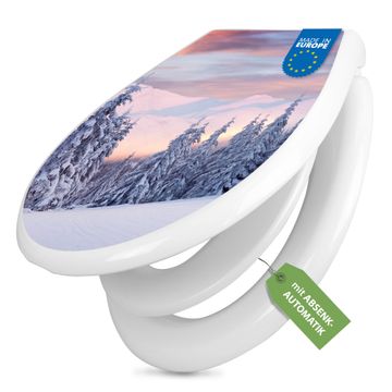 Toilettendeckel weiß mit Absenkautomatik Motiv Verschneite Berge