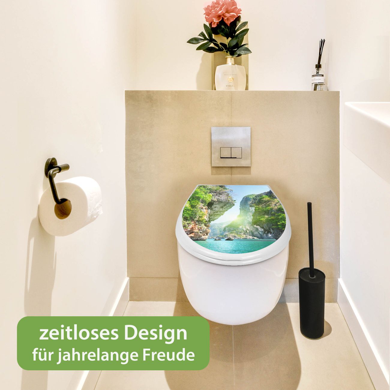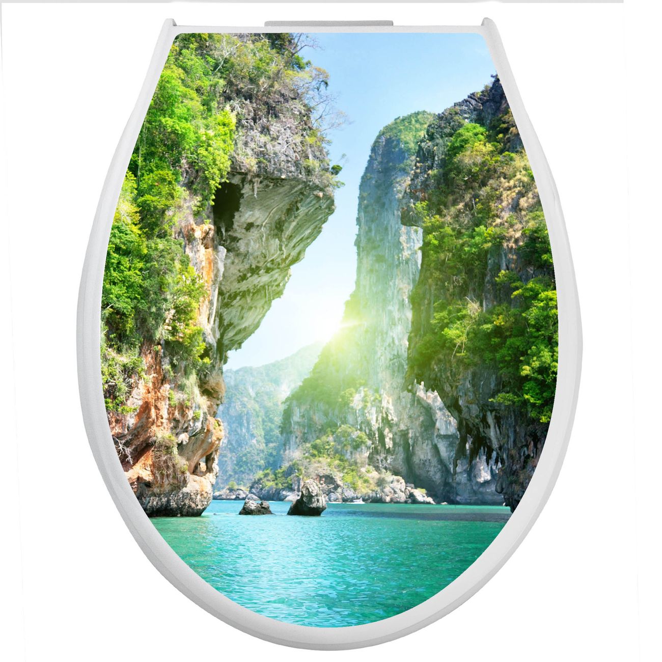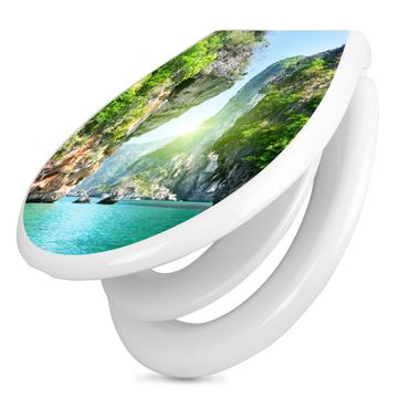 Toilettendeckel weiß mit Absenkautomatik Motiv Versteckte Bucht